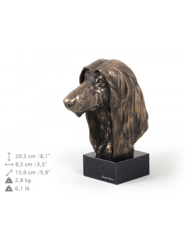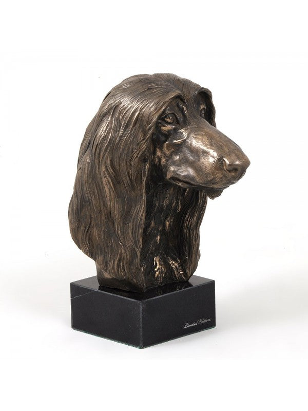 Handgjord Afghanhund-figurin i kallstöpt brons med interiör i stark kvarts ståendes på marmor i begränsad upplaga.