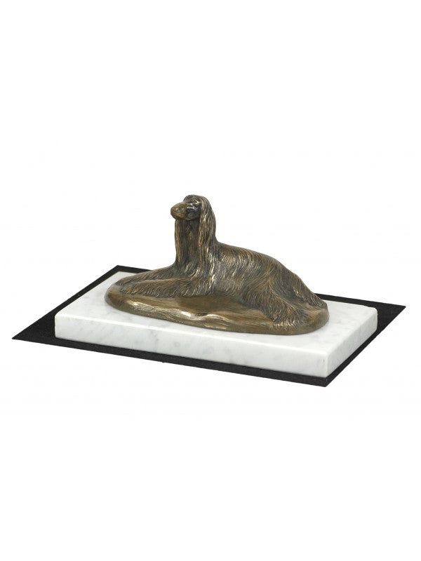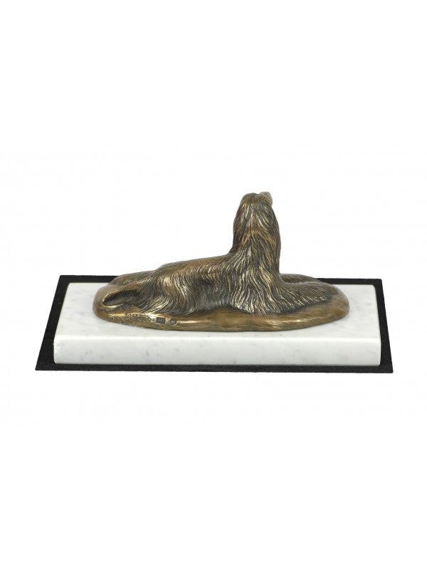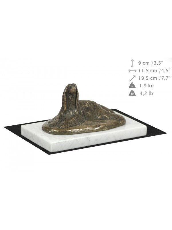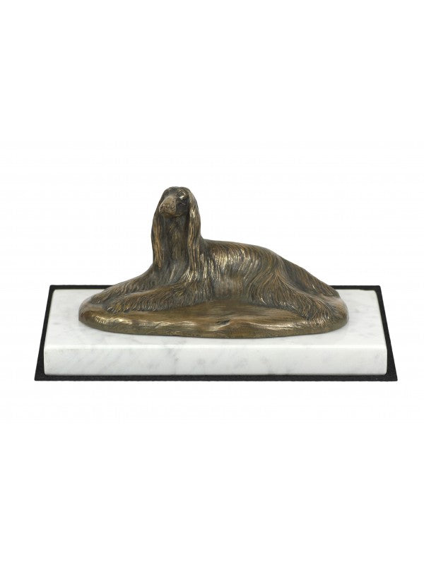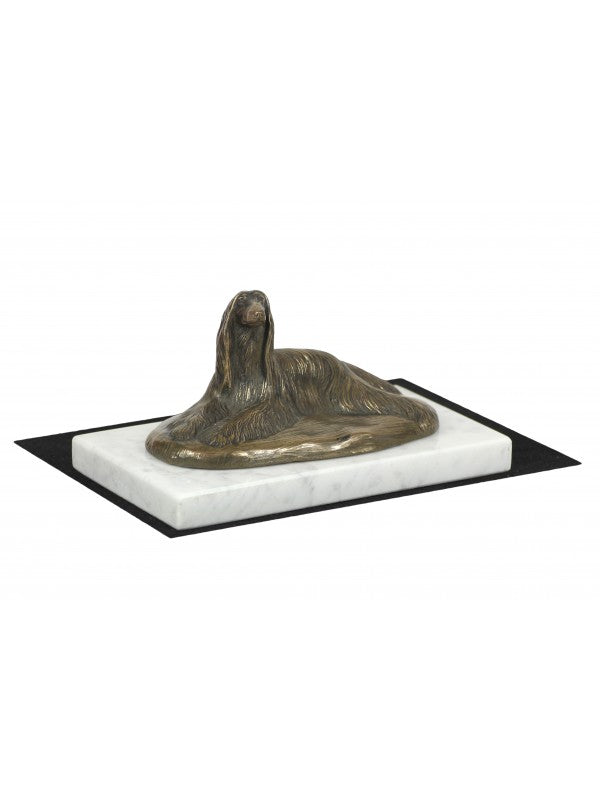 Handgjord Afghanhund-statyetti kallstöpt brons med interiör i stark kvarts ståendes på marmor i begränsad upplaga.