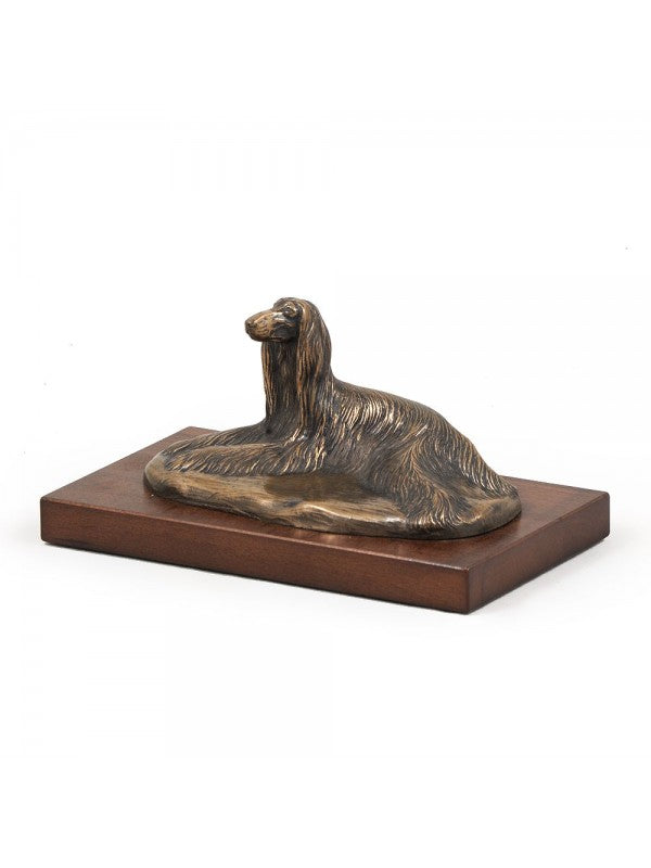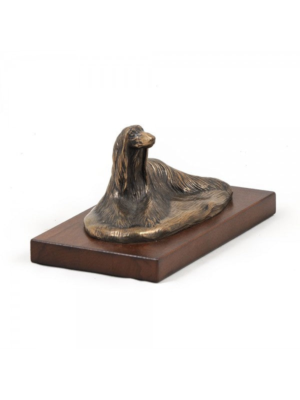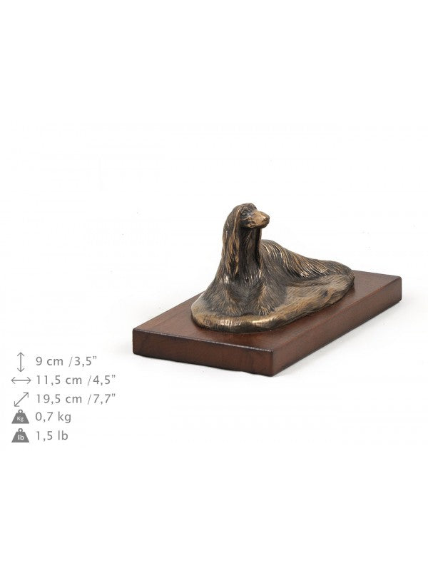 Handgjord Afghanhund-statyetti kallstöpt brons med interiör i stark kvarts ståendes på bas i trä i begränsad upplaga.