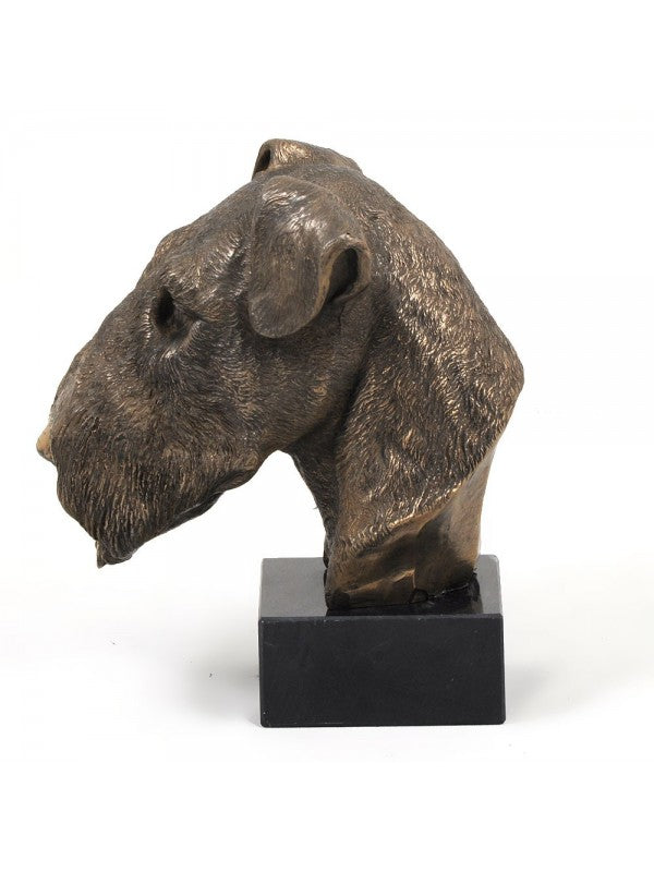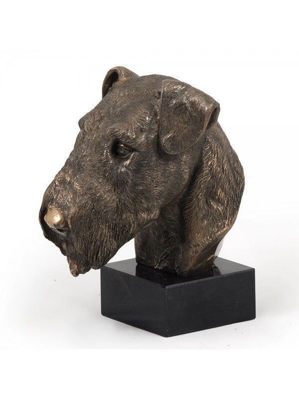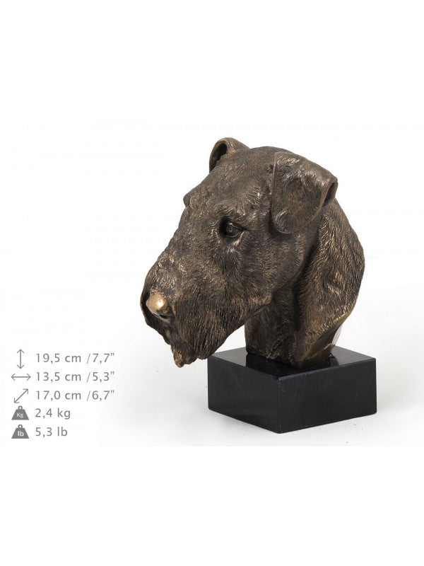 Handgjord Airedaleterrier-figurin i kallstöpt brons med interiör i stark kvarts ståendes på marmor i begränsad upplaga.