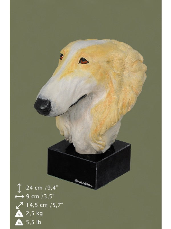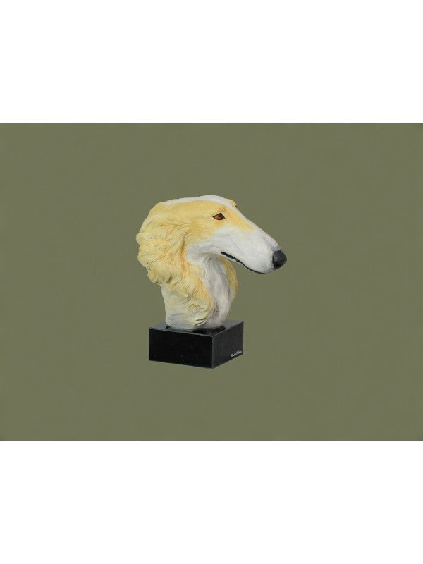 Handgjord Barzoï rysk varghund-figurin i kallstöpt brons med interiör i stark kvarts ståendes på marmor i begränsad upplaga.