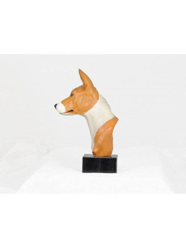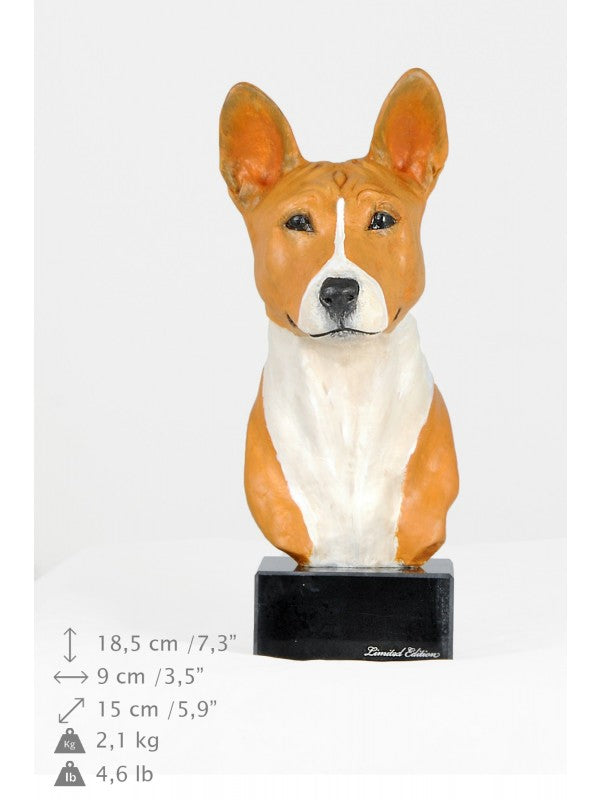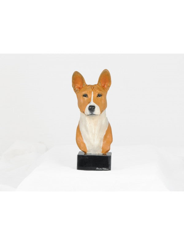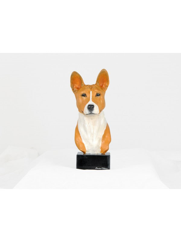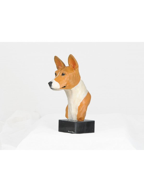 Handgjord Basenji-figurin i kallstöpt brons med interiör i stark kvarts ståendes på marmor i begränsad upplaga.