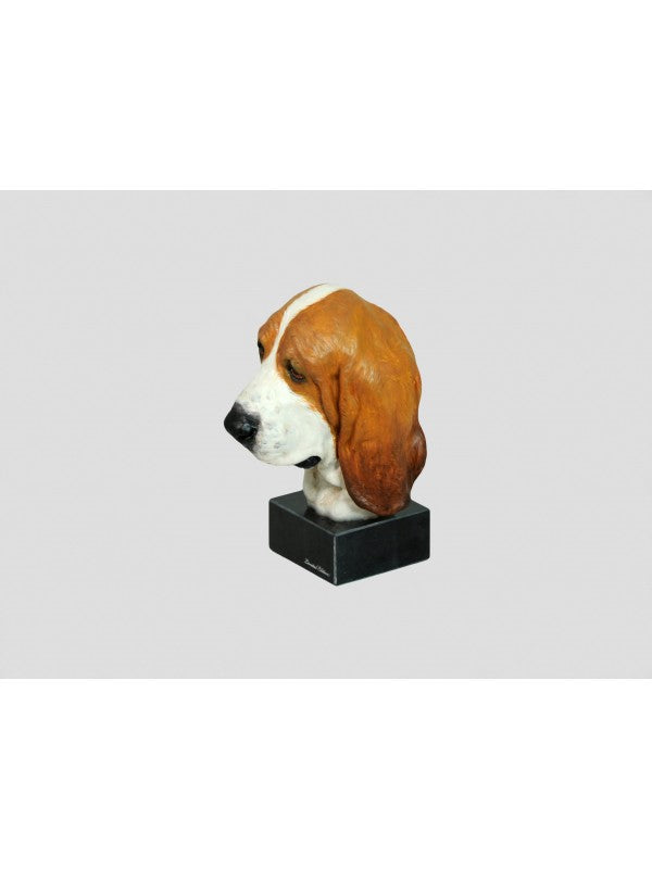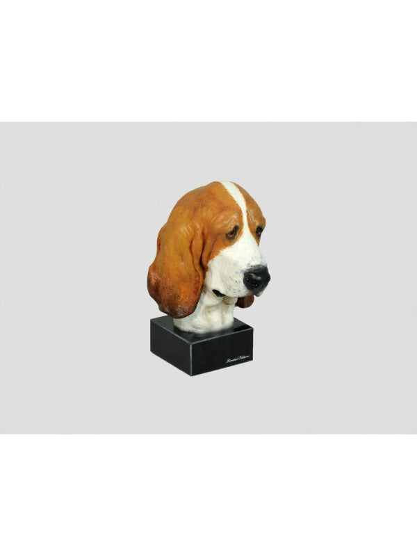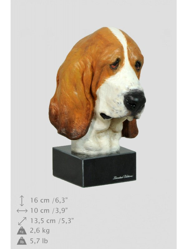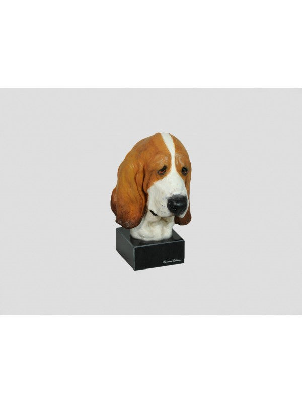 Handgjord Basset hound-figurin i kallstöpt brons med interiör i stark kvarts ståendes på marmor i begränsad upplaga.