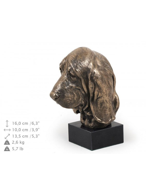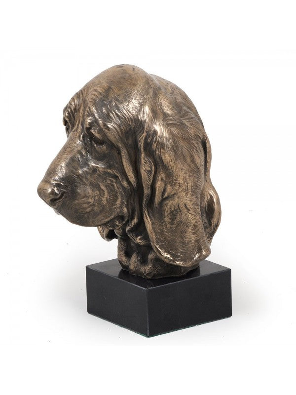 Handgjord Basset hound-figurin i kallstöpt brons med interiör i stark kvarts ståendes på marmor i begränsad upplaga.
