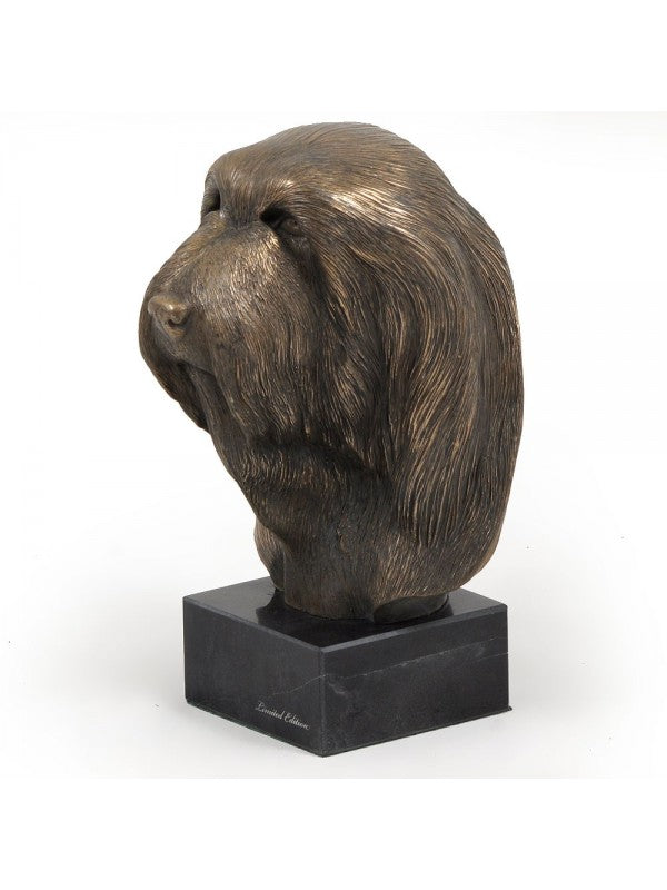 Handgjord Bearded collie-figurin i kallstöpt brons med interiör i stark kvarts ståendes på marmor i begränsad upplaga.