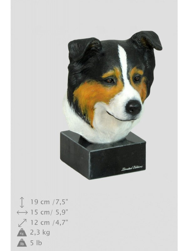 Handgjord Border collie-figurin i kallstöpt brons med interiör i stark kvarts ståendes på marmor i begränsad upplaga.