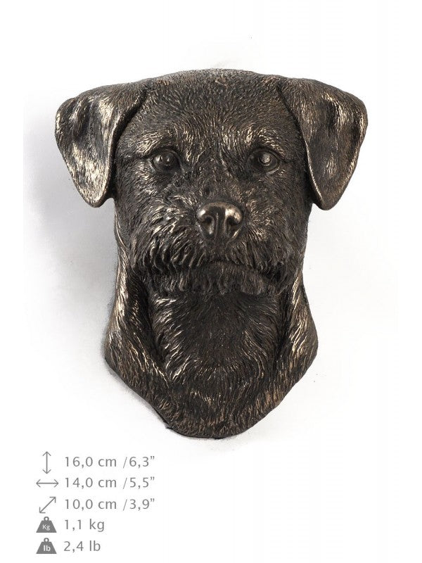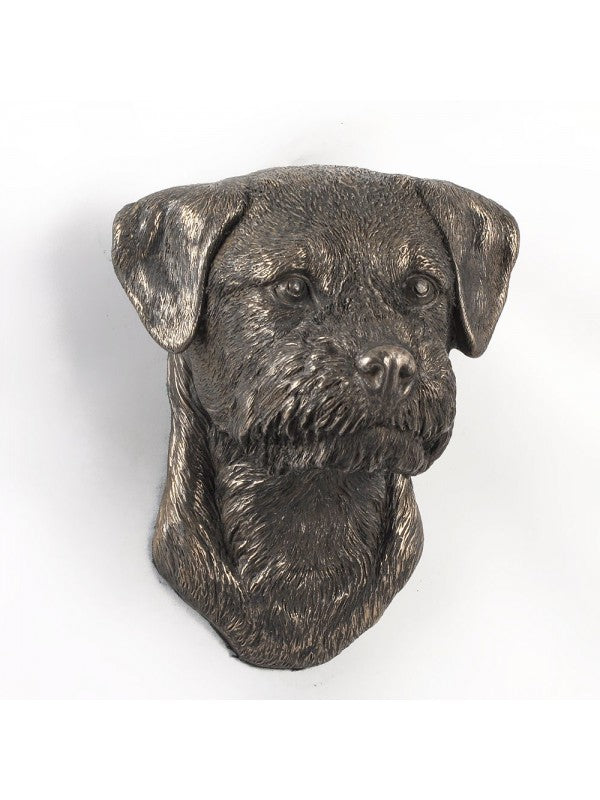 Handgjord Borderterrier-figurin i kallstöpt brons med interiör i stark kvartsi begränsad upplaga.