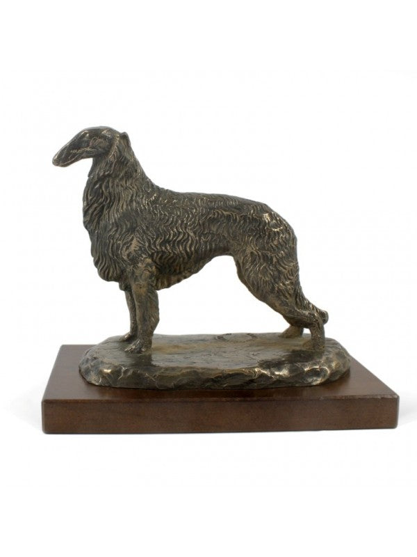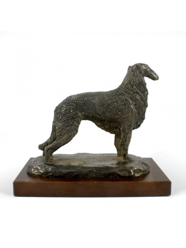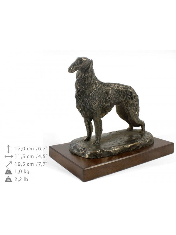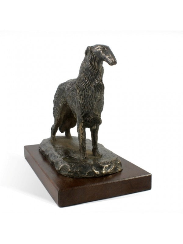 Handgjord Borzoi rysk varghund-statyetti kallstöpt brons med interiör i stark kvarts ståendes på träbas i begränsad upplaga.