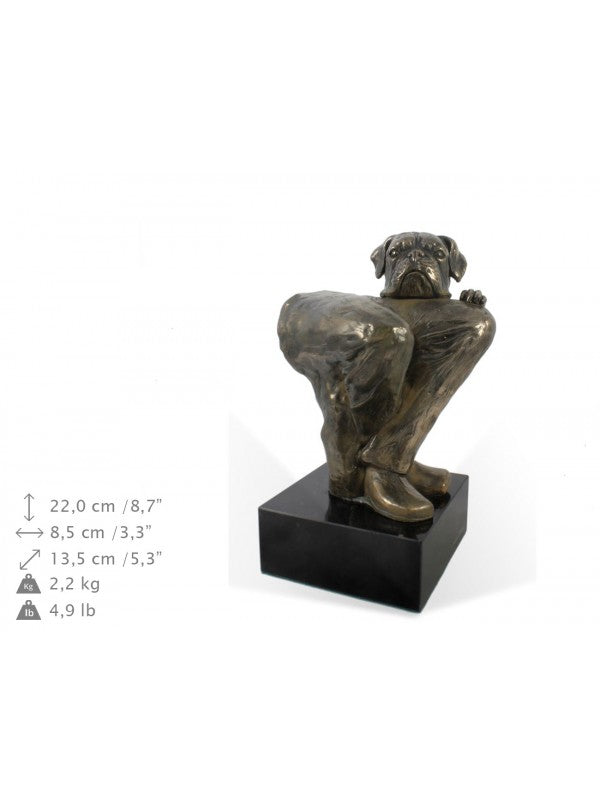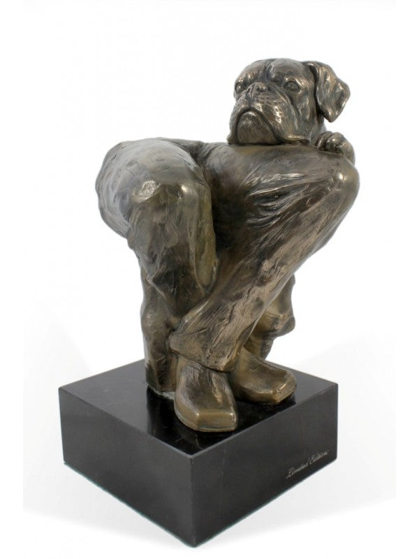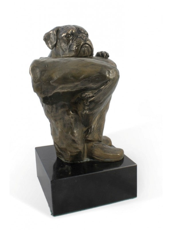 Handgjord Boxer-statyetti kallstöpt brons med interiör i stark kvarts ståendes på marmor i begränsad upplaga.