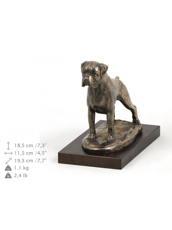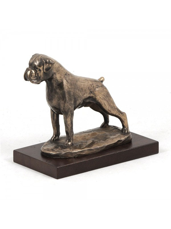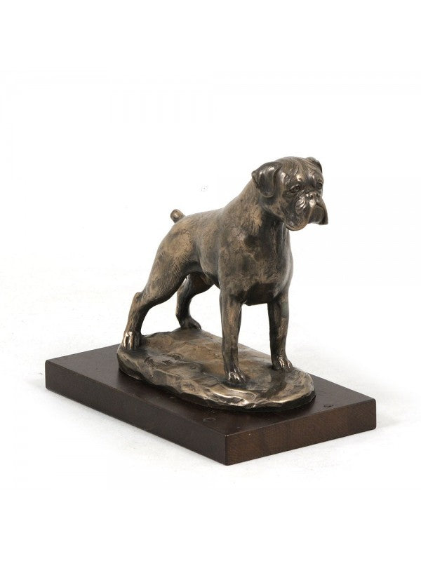 Handgjord Boxer-statyetti kallstöpt brons med interiör i stark kvarts ståendes på bas i trä i begränsad upplaga.