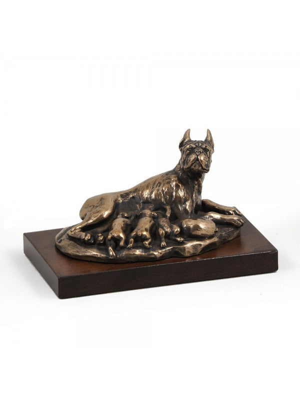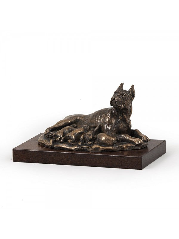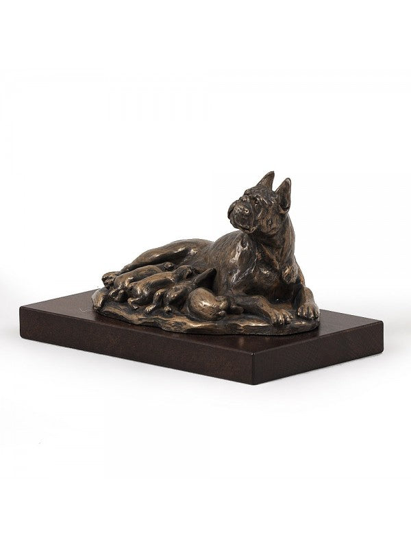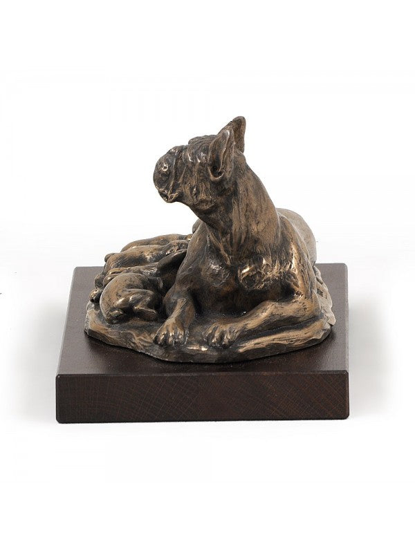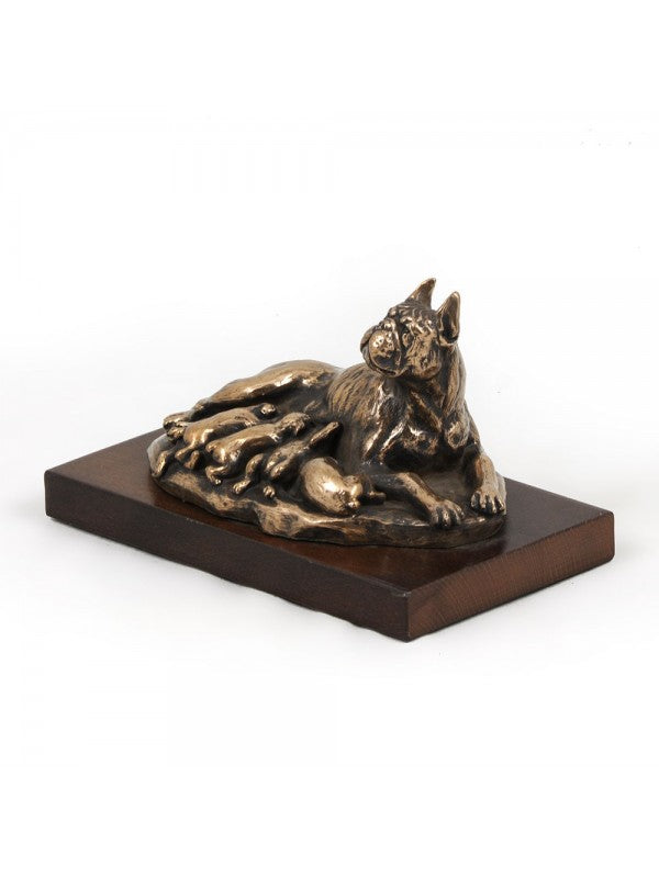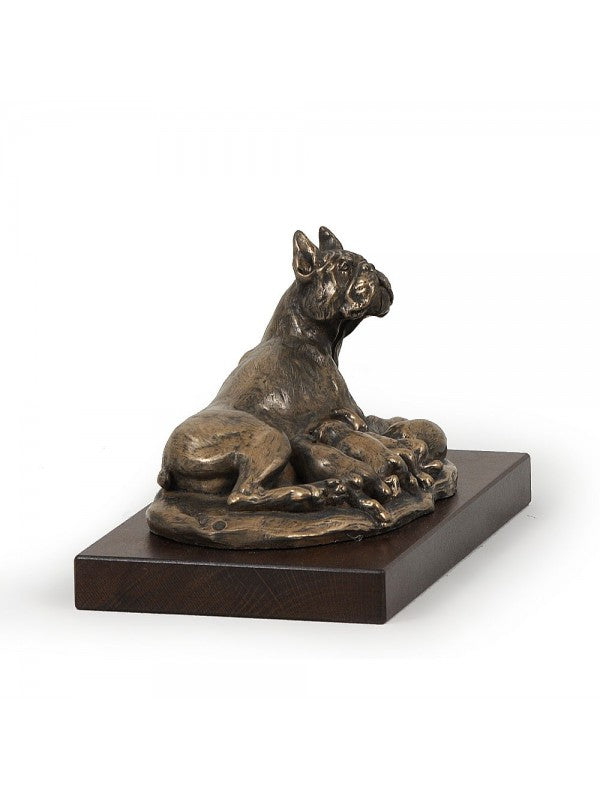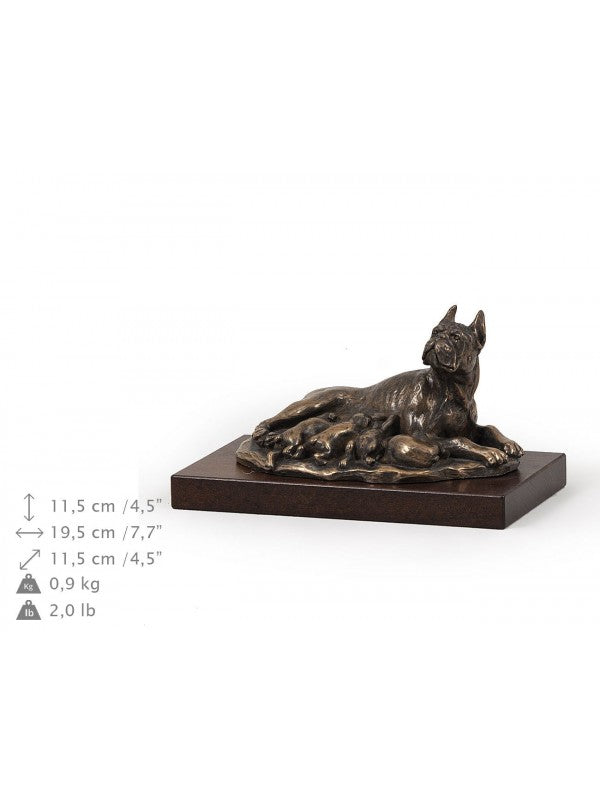Handgjord Boxer-statyetti kallstöpt brons med interiör i stark kvarts ståendes på bas i trä i begränsad upplaga.