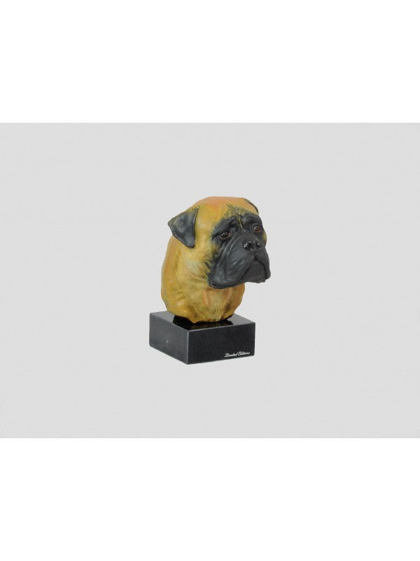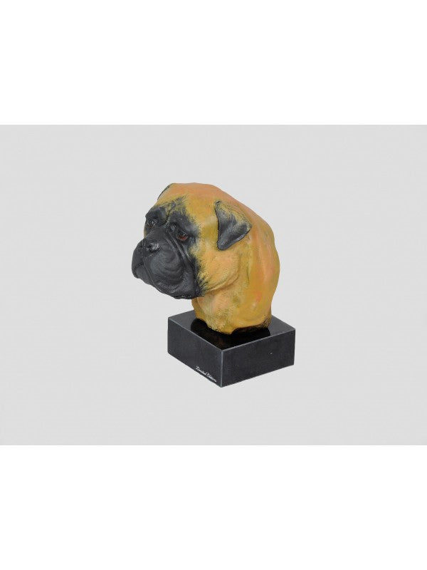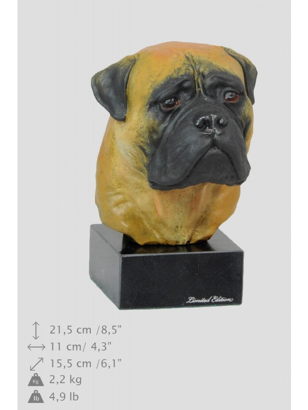 Handgjord Bullmastiff-figurin i kallstöpt brons med interiör i stark kvarts ståendes på marmor i begränsad upplaga.
