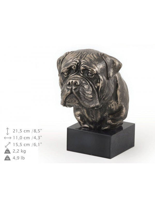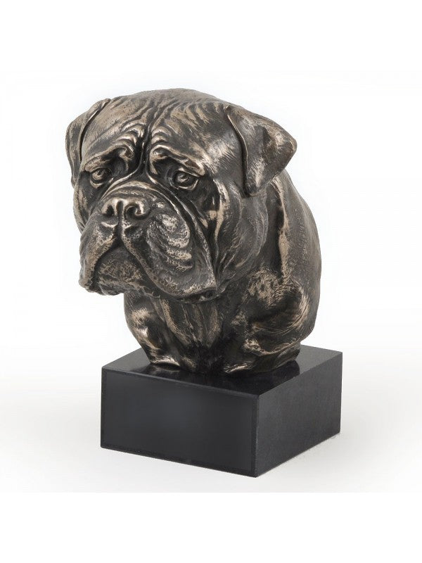 Handgjord Bullmastiff-figurin i kallstöpt brons med interiör i stark kvarts ståendes på marmor i begränsad upplaga.