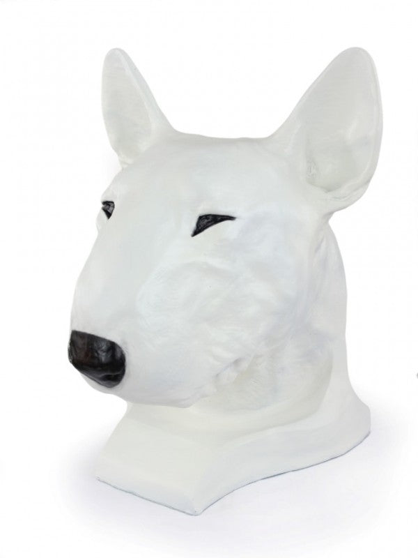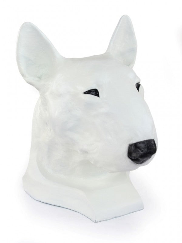 Handgjord målad Bullterrier-figurin i stark kvarts med noga utvalda detaljer för att fånga hundens skönhet.