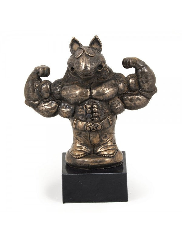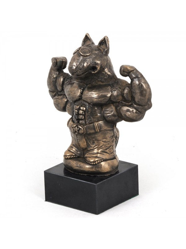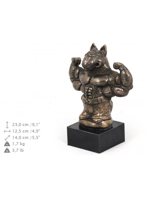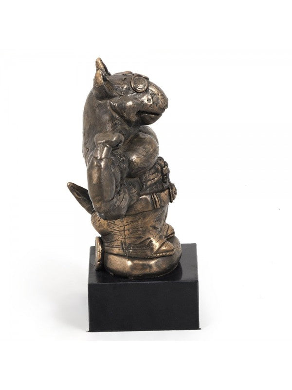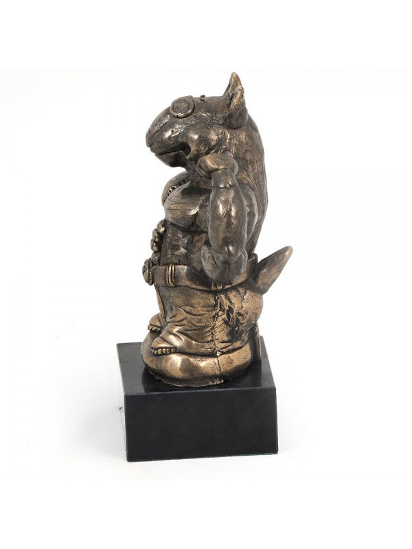 Handgjord Bullterrier-statyett i kallstöpt brons med interiör i stark kvarts ståendes på marmor i begränsad upplaga.