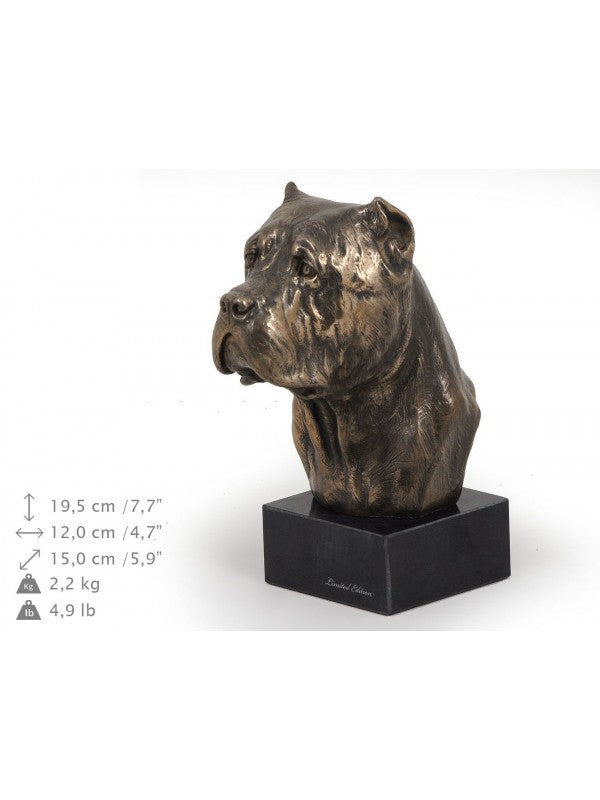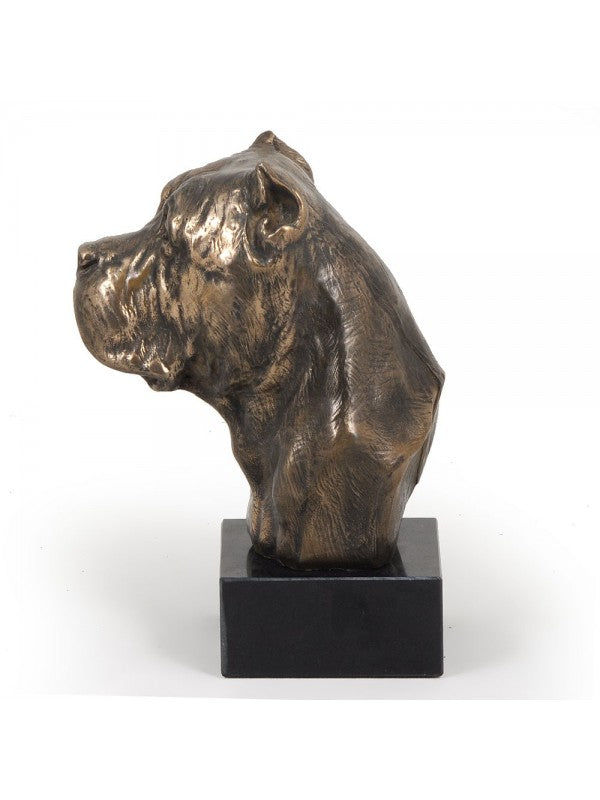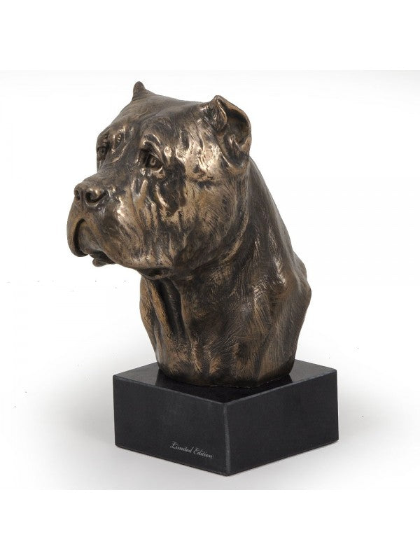 Handgjord Cane corso-figurin i kallstöpt brons med interiör i stark kvarts ståendes på marmor i begränsad upplaga.
