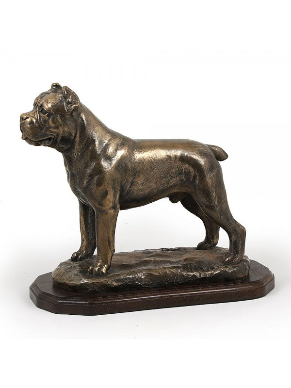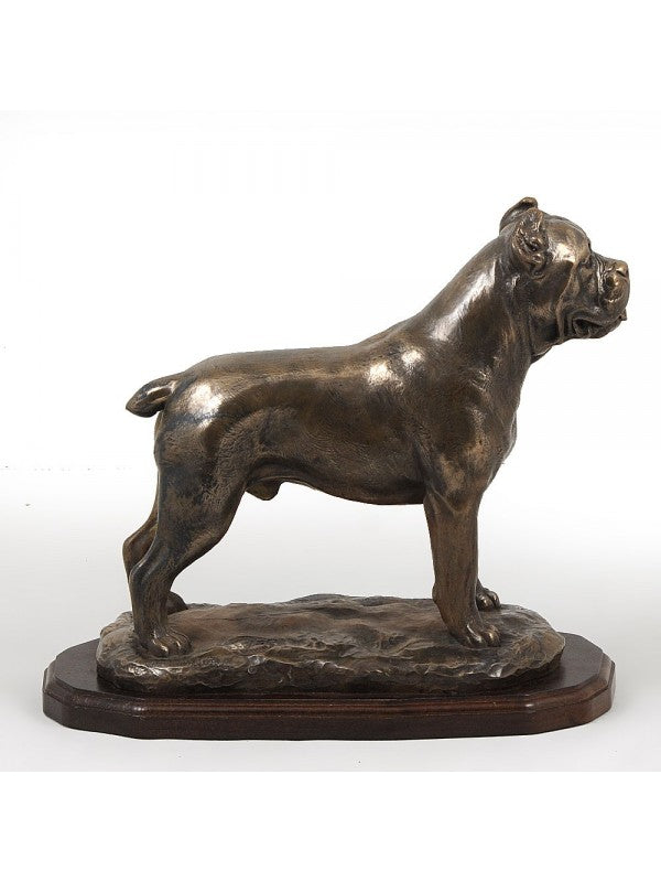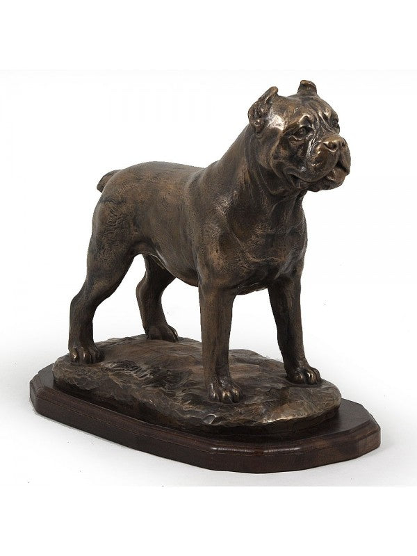 Handgjord Cane corso-statyett i kallstöpt brons med interiör i stark kvarts ståendes på bas i trä i begränsad upplaga.