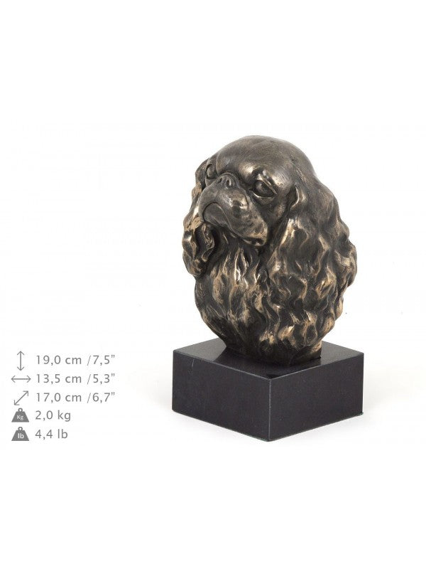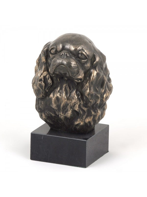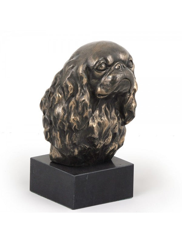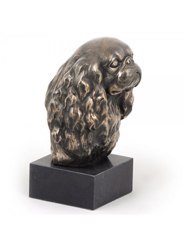 Handgjord Cavalier king charles spaniel-figurin i kallstöpt brons med interiör i stark kvarts ståendes på marmor i begränsad upplaga.