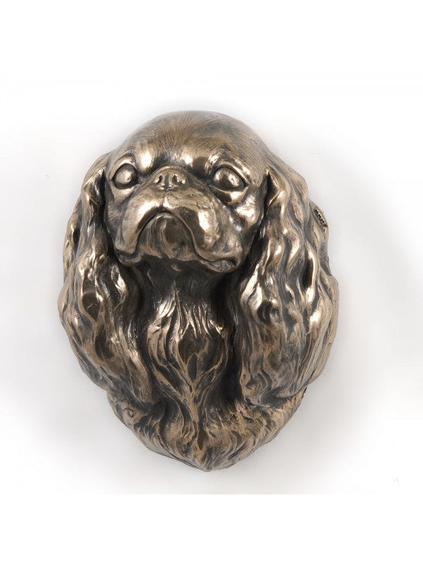 Handgjord Cavalier king charles spaniel-figurin i kallstöpt brons med interiör i stark kvartsi begränsad upplaga.
