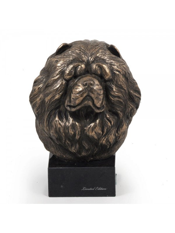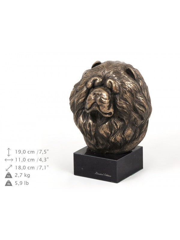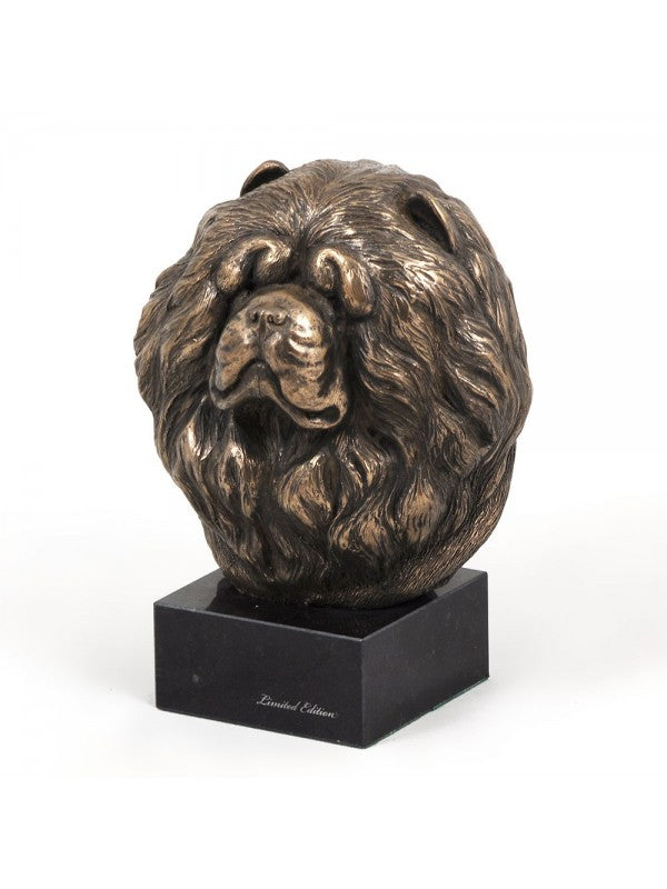 Handgjord Chow chow-figurin i kallstöpt brons med interiör i stark kvarts ståendes på marmor i begränsad upplaga.