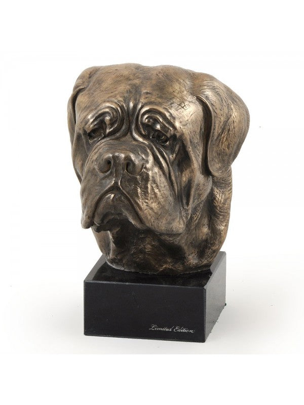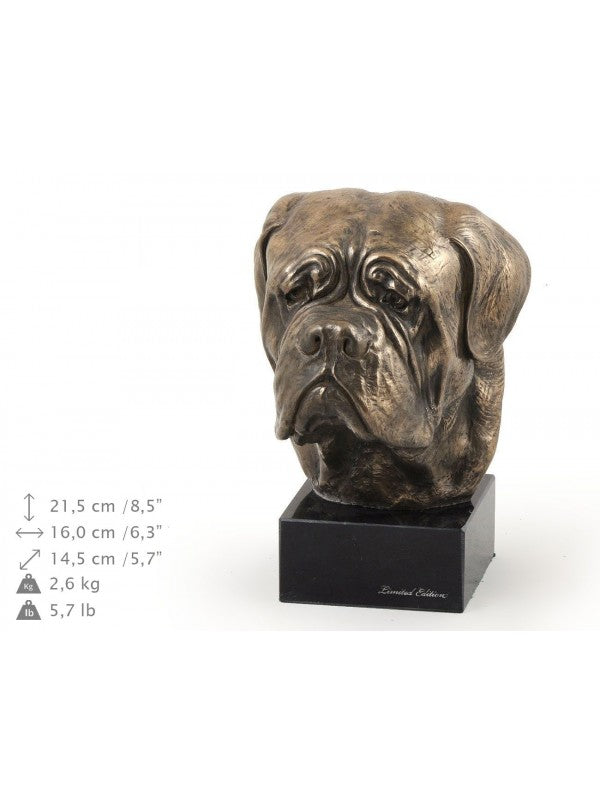 Handgjord Dogue de bordeaux-figurin i kallstöpt brons med interiör i stark kvarts ståendes på marmor i begränsad upplaga.