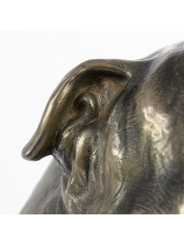 Staty från Art-dog-kollektionen. Art-Dog är en familjeägd smedja beståendes av Krzysztof "Chris" Liszka och sin far som tillsammans har tillverkat skräddarsydda hundstatyer sedan 1993.