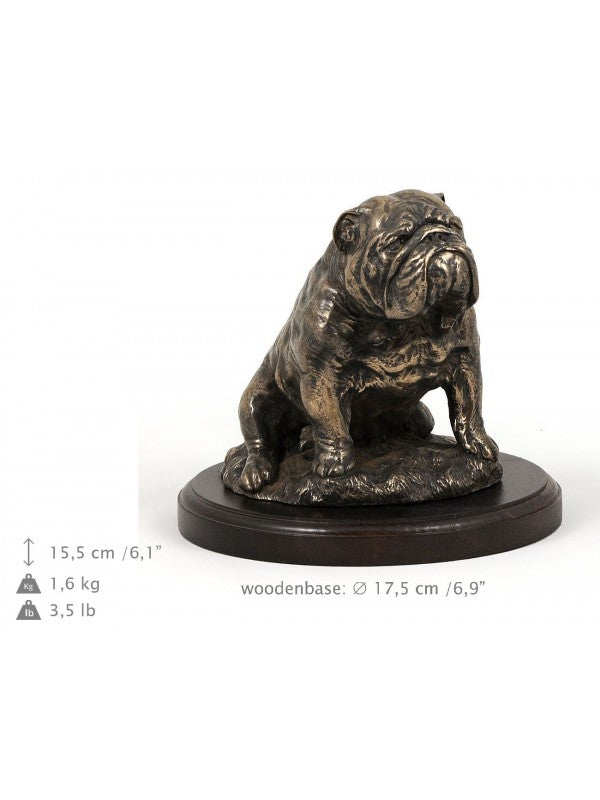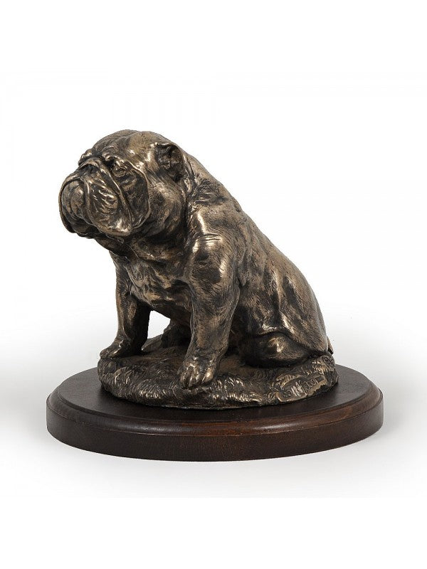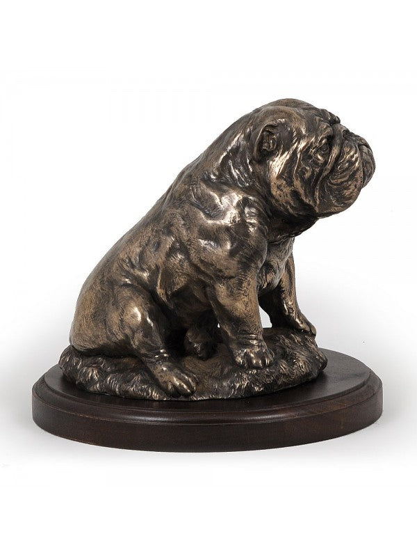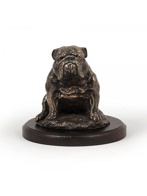Handgjord Engelsk bulldogg-statyetti kallstöpt brons med interiör i stark kvarts ståendes på bas i trä i begränsad upplaga.