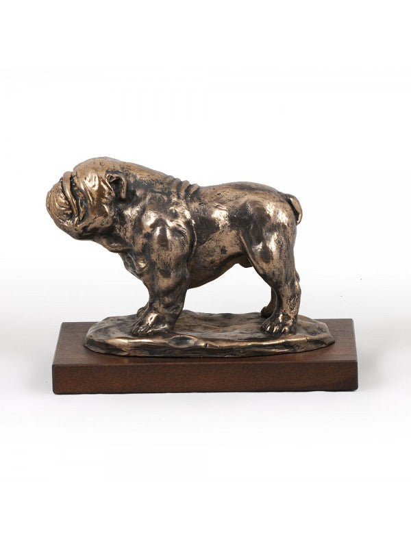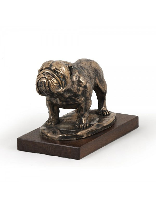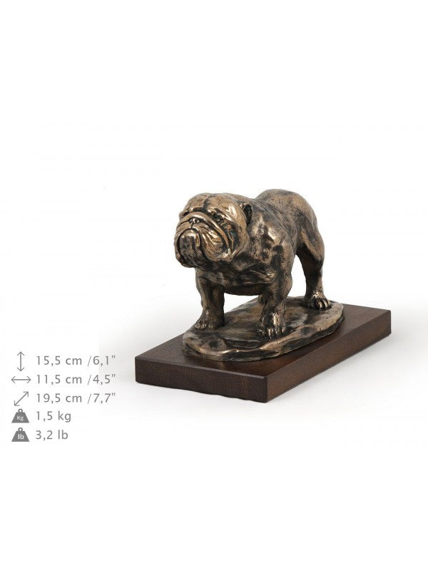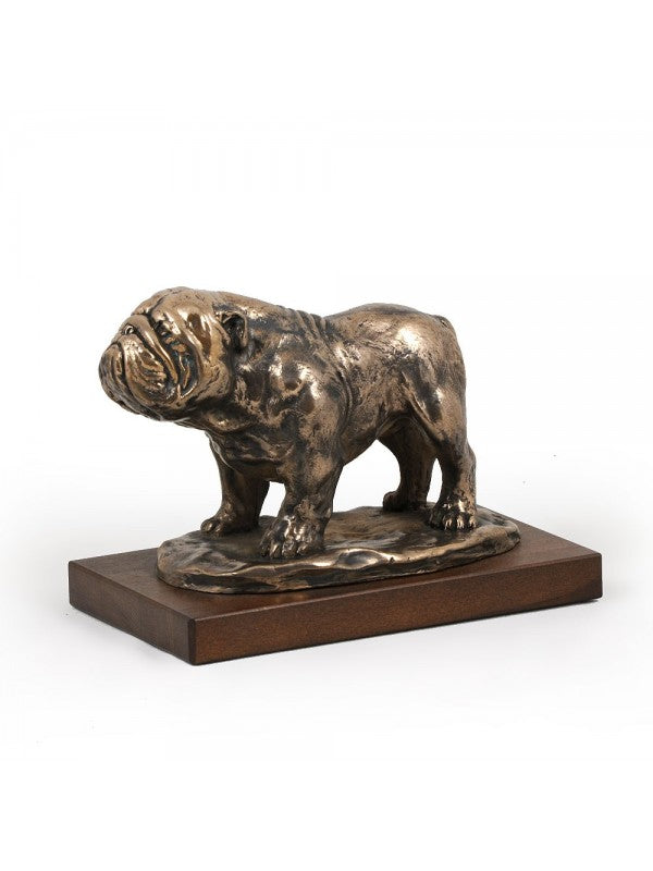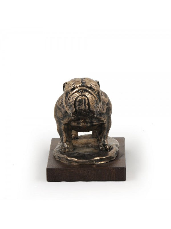 Handgjord Engelsk bulldogg-statyetti kallstöpt brons med interiör i stark kvarts ståendes på bas i trä i begränsad upplaga.