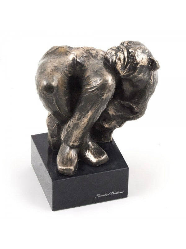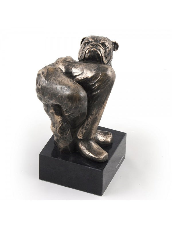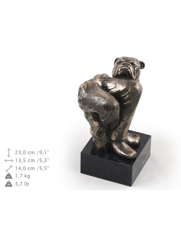 Handgjord Engelsk bulldogg-statyetti kallstöpt brons med interiör i stark kvarts ståendes på marmor i begränsad upplaga.