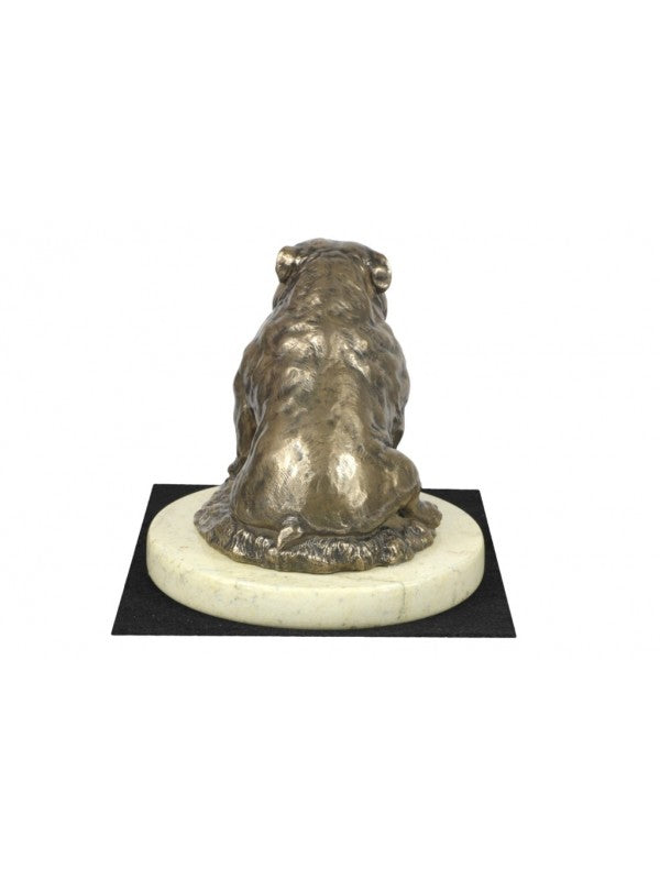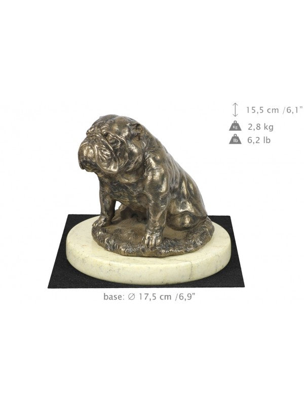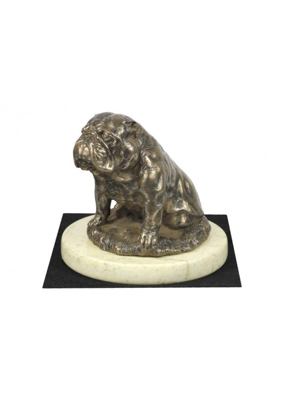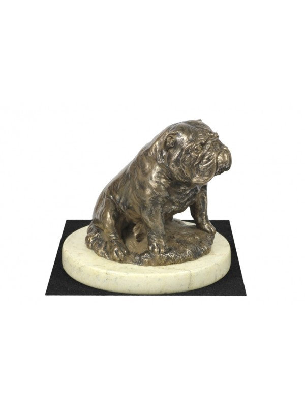 Handgjord Engelsk bulldogg-statyetti kallstöpt brons med interiör i stark kvarts ståendes på sandmarmor i begränsad upplaga.