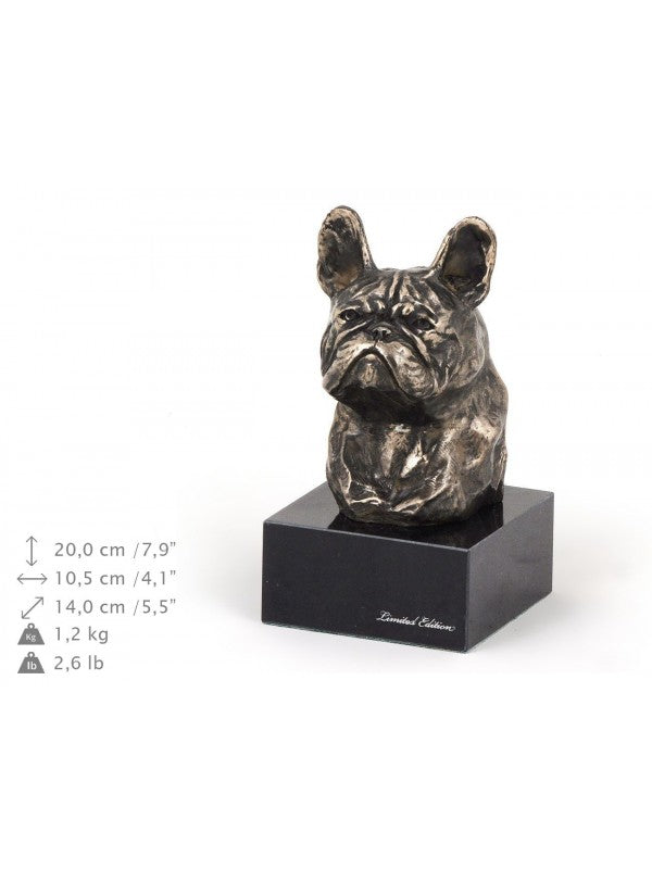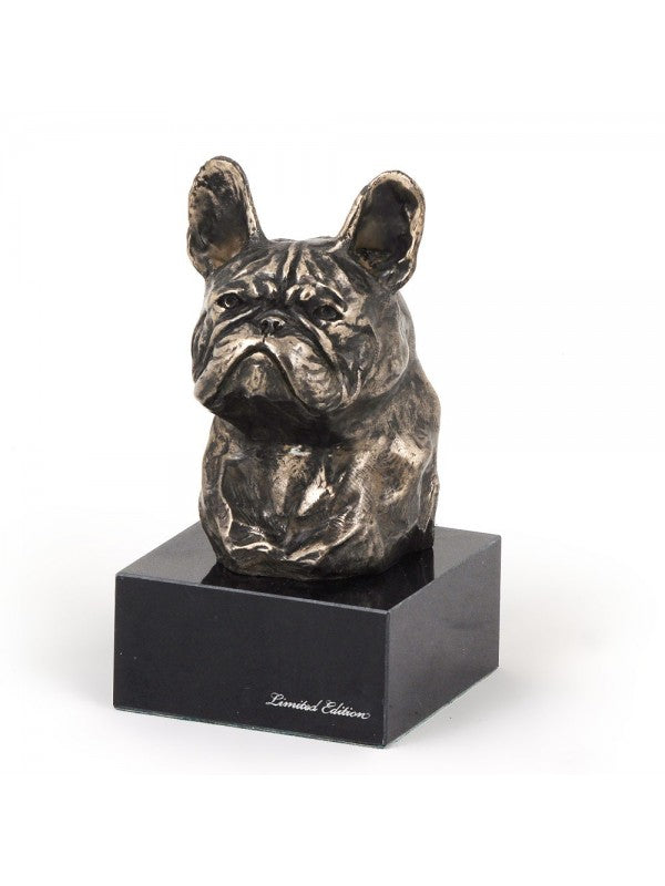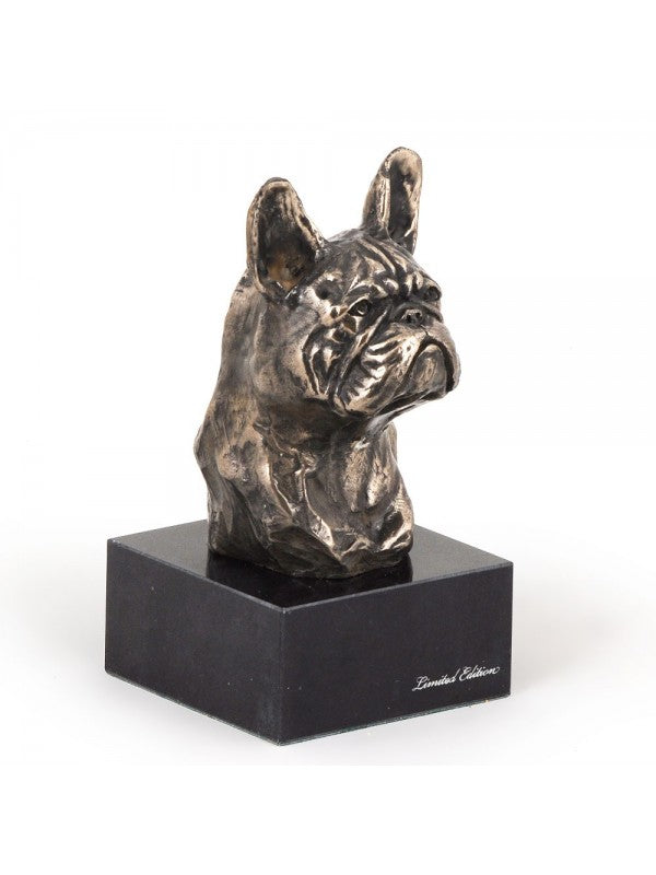 Handgjord Fransk bulldogg-figurin i kallstöpt brons med interiör i stark kvarts ståendes på marmor i begränsad upplaga.