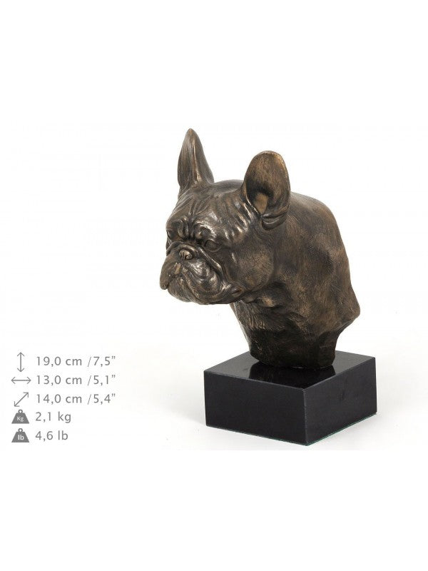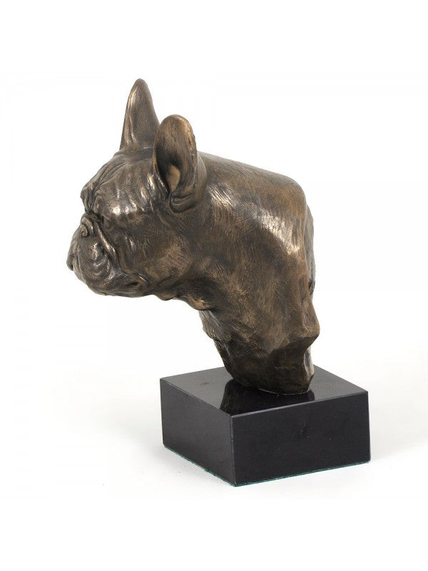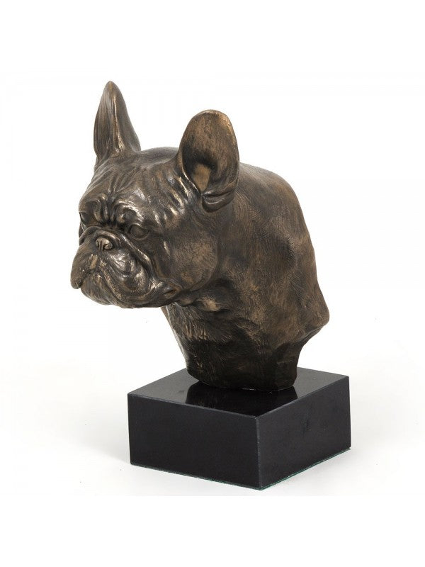 Handgjord Fransk bulldogg-figurin i i kallstöpt brons med interiör i stark kvarts ståendes på marmor i begränsad upplaga.