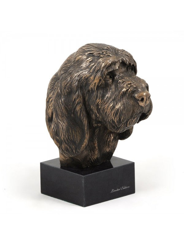 Handgjord Grand basset griffon vendéen-figurin i i kallstöpt brons med interiör i stark kvarts ståendes på marmor i begränsad upplaga.