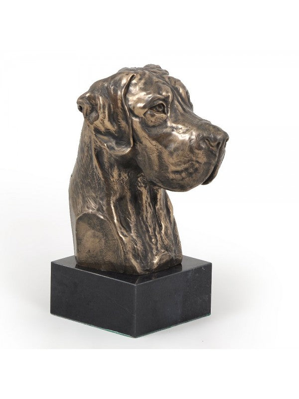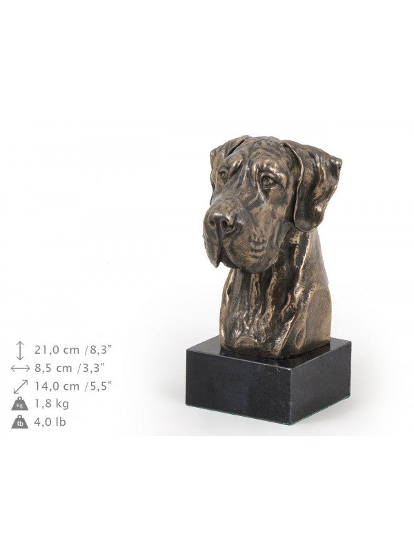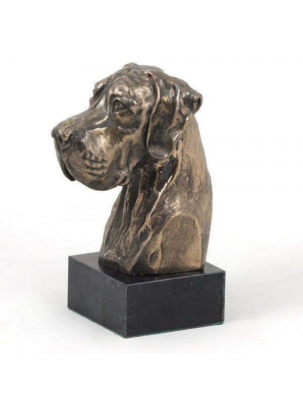 Handgjord Grand danois-figurin i i kallstöpt brons med interiör i stark kvarts ståendes på marmor i begränsad upplaga.