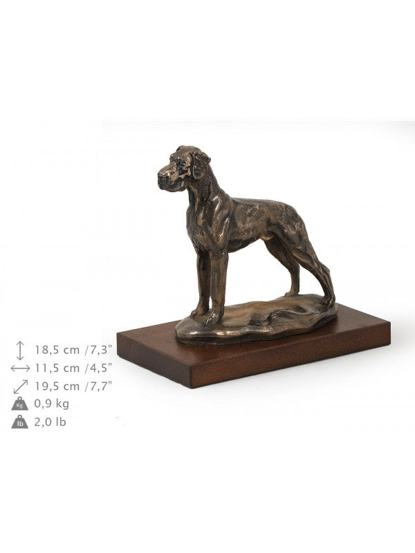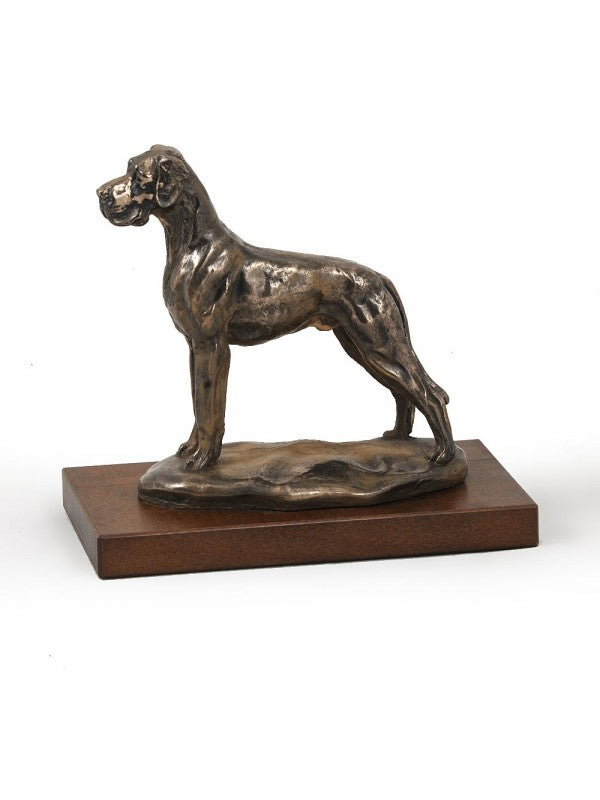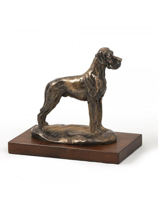 Handgjord Great Dane-statyett i kallstöpt brons med interiör i stark kvarts ståendes på bas i trä i begränsad upplaga.