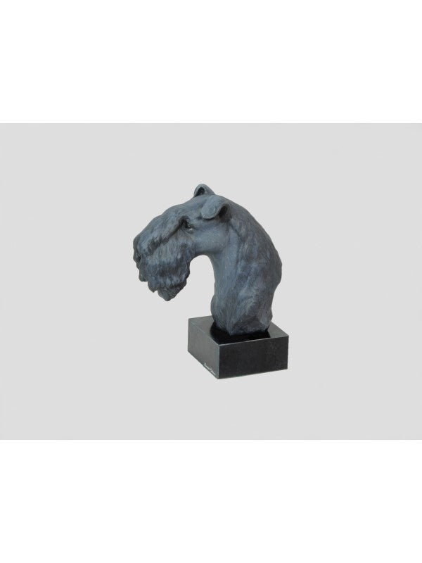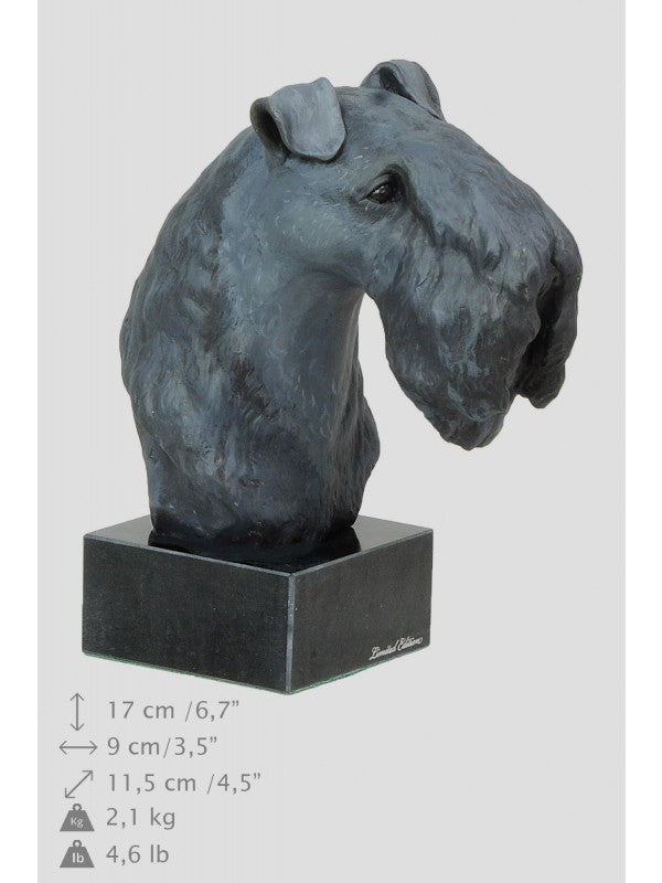 Handgjord Kerry blue terrier-figurin i kallstöpt brons med interiör i stark kvarts ståendes på marmor i begränsad upplaga.