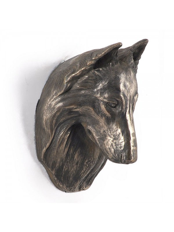 Handgjord Malinois-figurin i kallstöpt brons med interiör i stark kvartsi begränsad upplaga.
