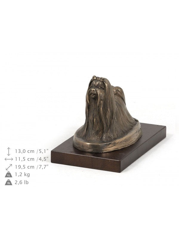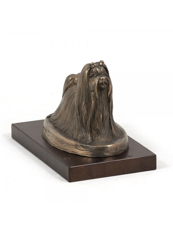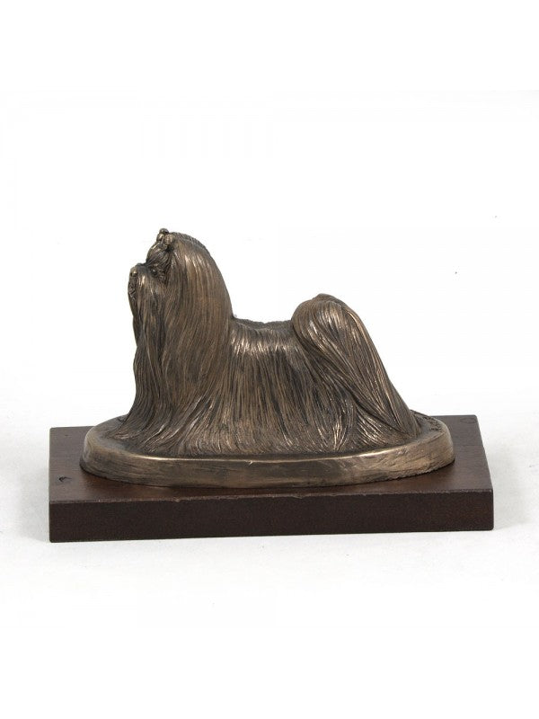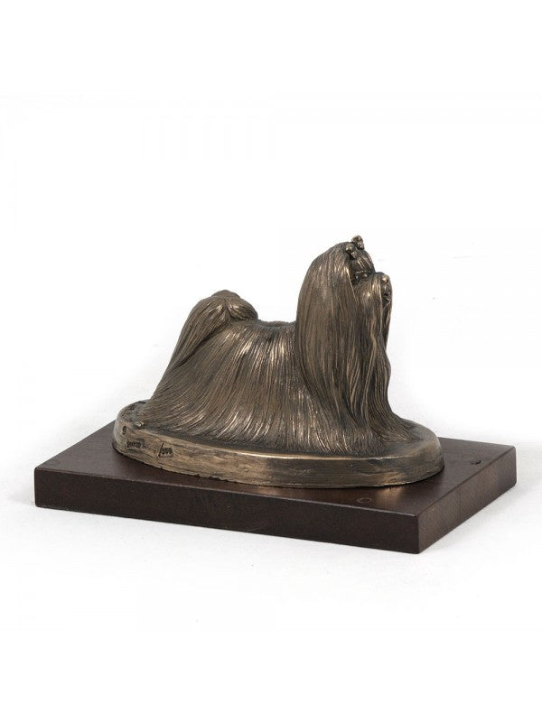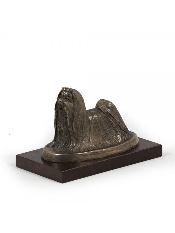 Handgjord Malteser-statyett i kallstöpt brons med interiör i stark kvarts ståendes på bas i trä i begränsad upplaga.