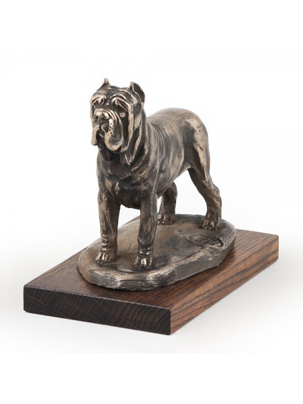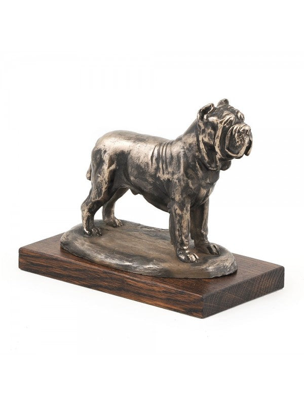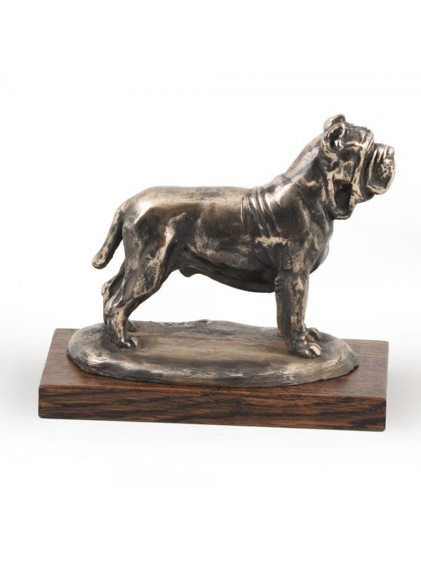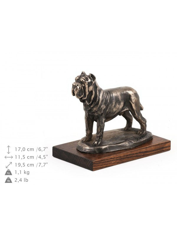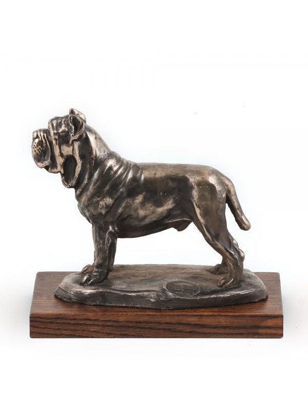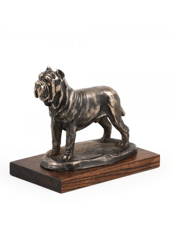 Handgjord Mastino napoletano-statyett i kallstöpt brons med interiör i stark kvarts ståendes på bas i trä i begränsad upplaga.
