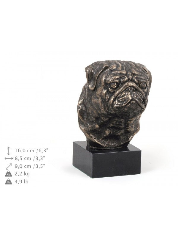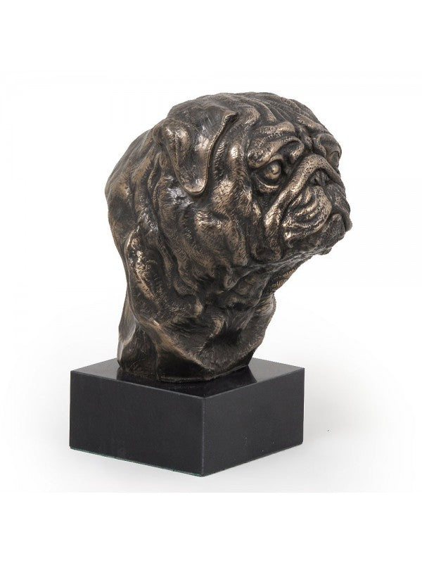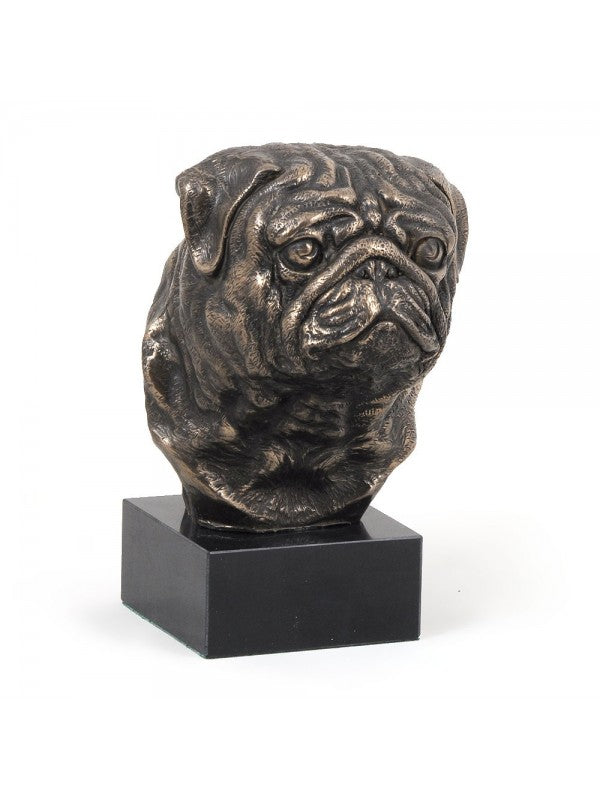 Handgjord Mops-figurin i i kallstöpt brons med interiör i stark kvarts ståendes på marmor i begränsad upplaga.