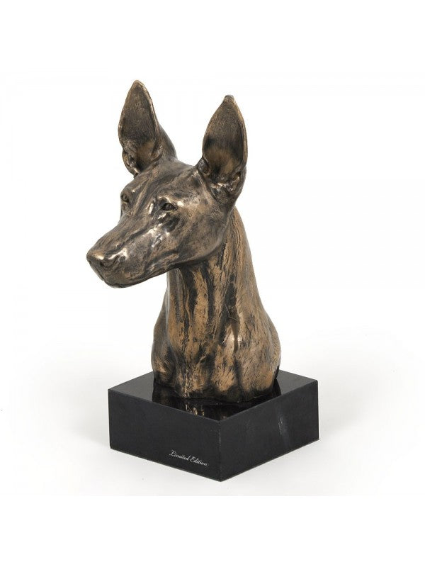 Handgjord Pharaoh Hound-figurin i i kallstöpt brons med interiör i stark kvarts ståendes på marmor i begränsad upplaga.