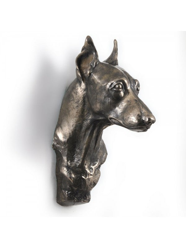 Handgjord Pincher-figurin i kallstöpt brons med interiör i stark kvartsi begränsad upplaga.