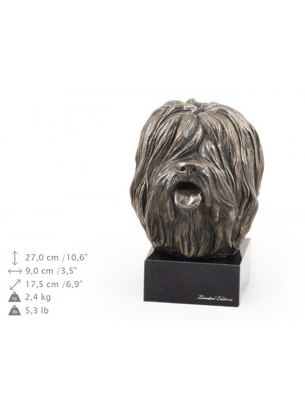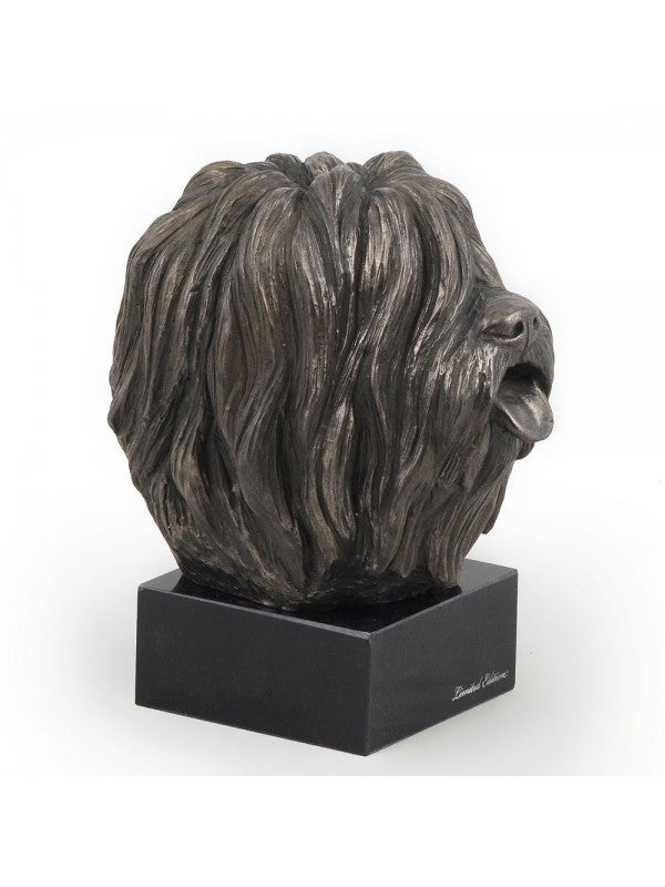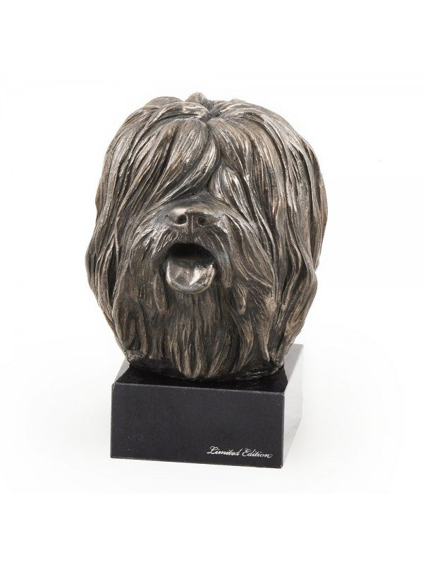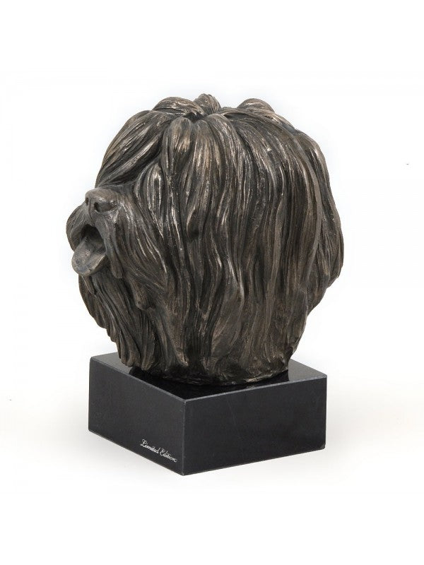 Handgjord Polski owczarek nizinny-figurin i i kallstöpt brons med interiör i stark kvarts ståendes på marmor i begränsad upplaga.