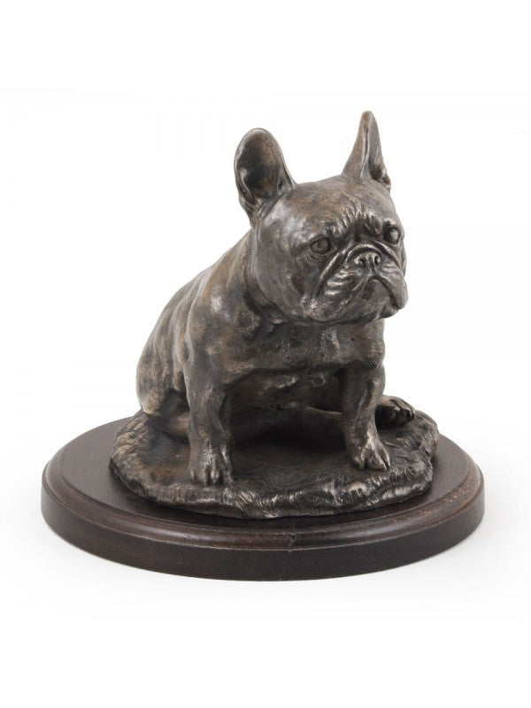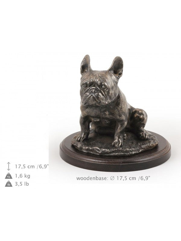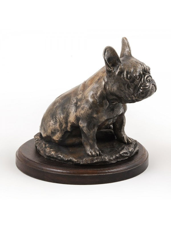 Handgjord Ransk bulldogg-statyett i kallstöpt brons med interiör i stark kvarts ståendes på bas i trä i begränsad upplaga.