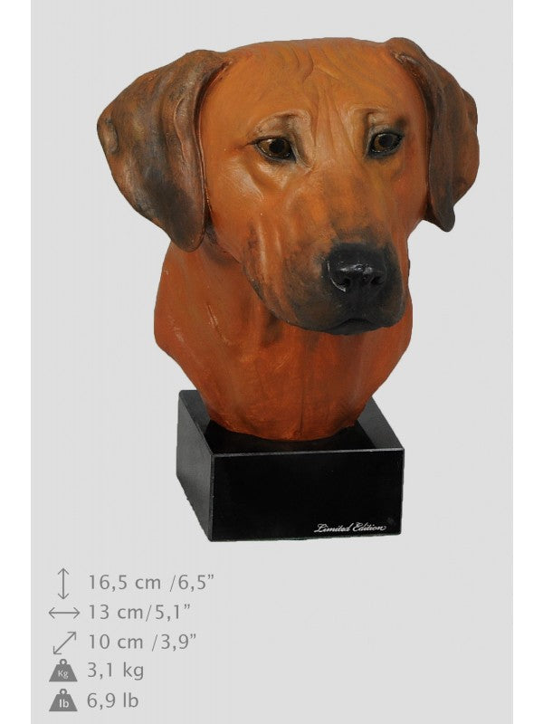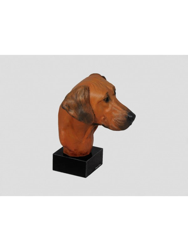 Handgjord Rhodesian ridgeback-figurin i i kallstöpt brons med interiör i stark kvarts ståendes på marmor i begränsad upplaga.