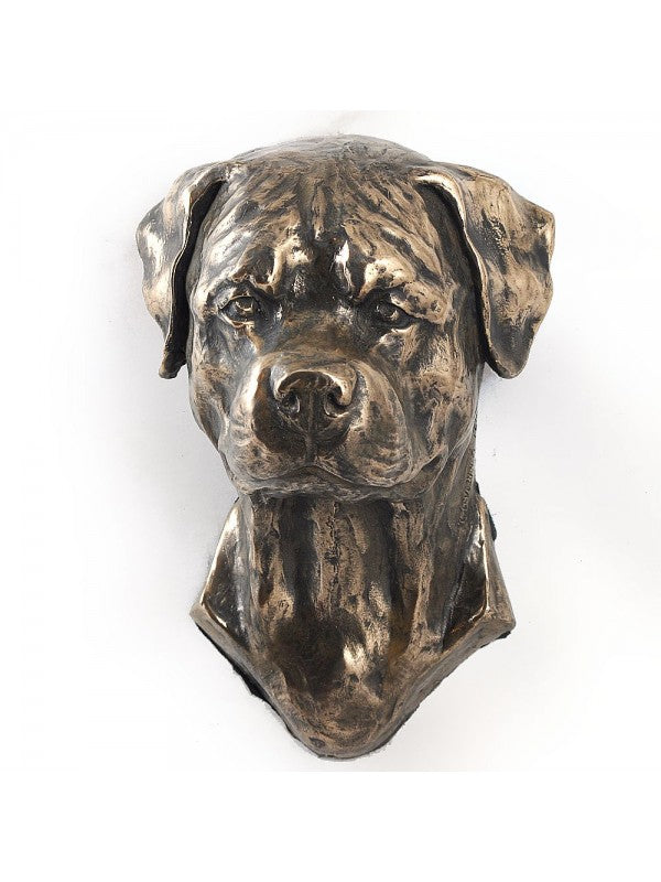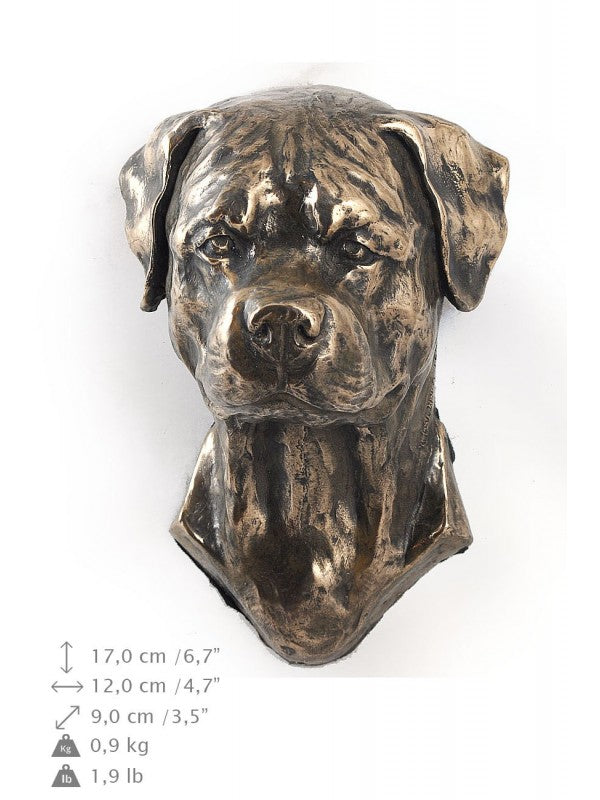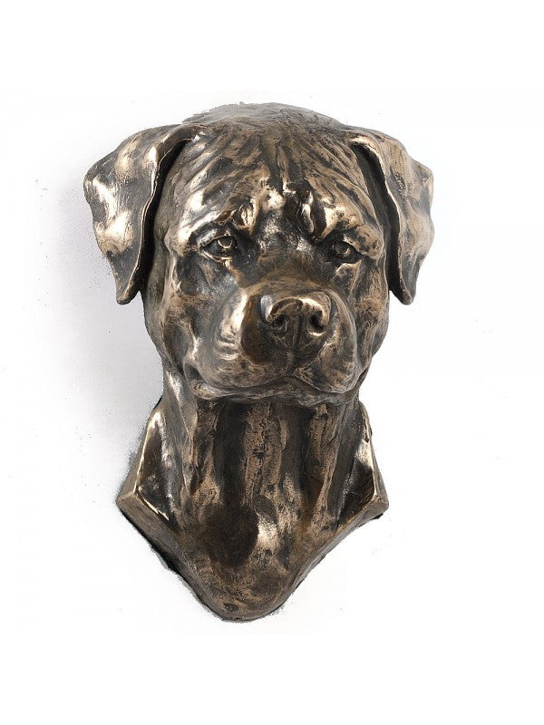 Handgjord Rottweiler-figurin i kallstöpt brons med interiör i stark kvartsi begränsad upplaga.