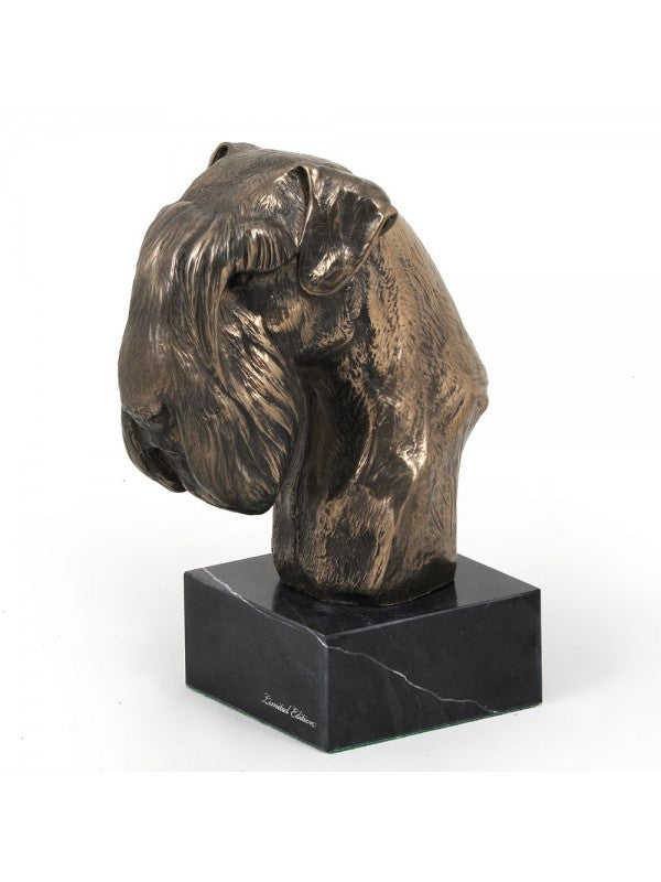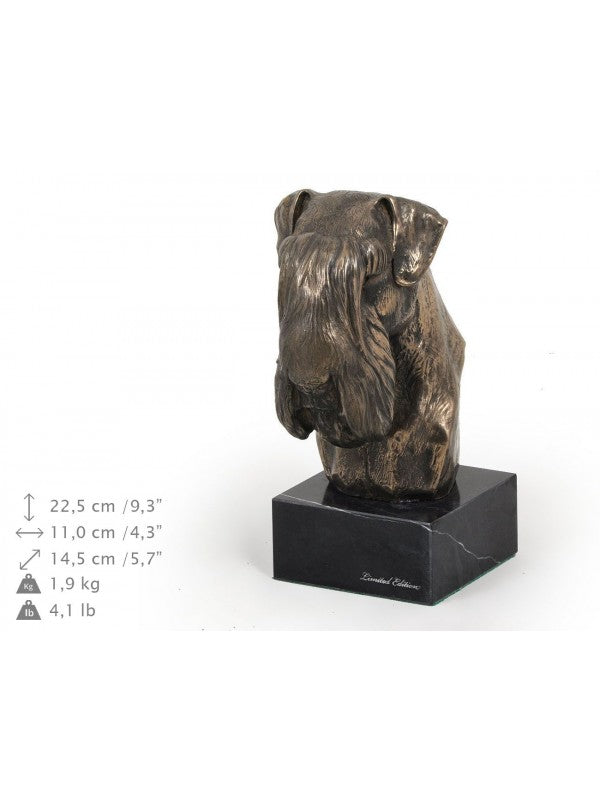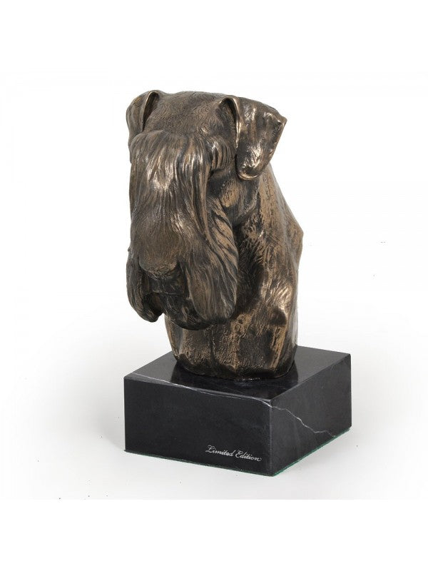 Handgjord Schnauzer-figurin i i kallstöpt brons med interiör i stark kvarts ståendes på marmor i begränsad upplaga.