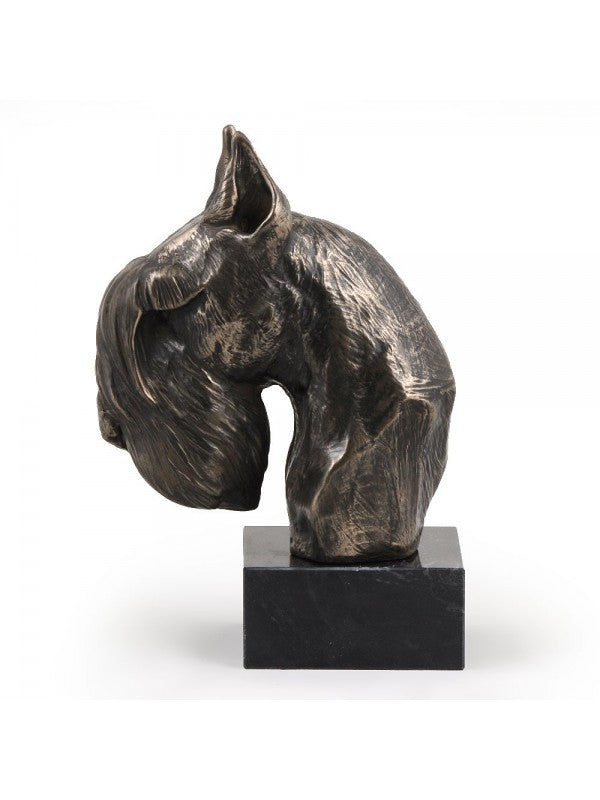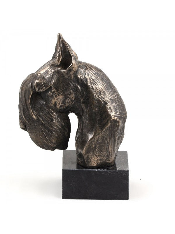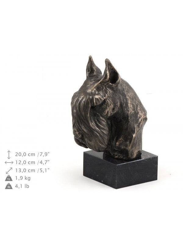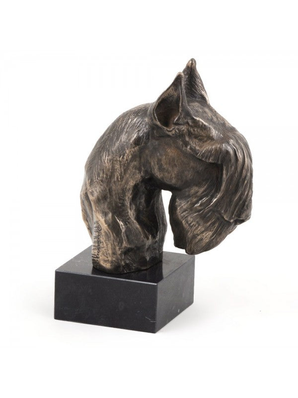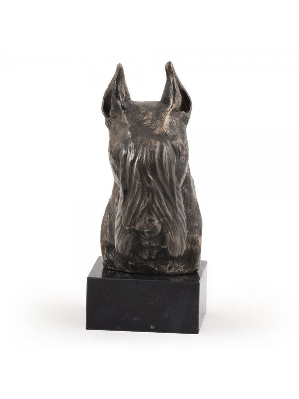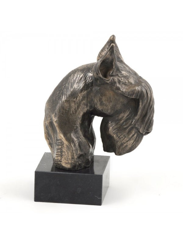 Handgjord Schnauzer-figurin i i kallstöpt brons med interiör i stark kvarts ståendes på marmor i begränsad upplaga.