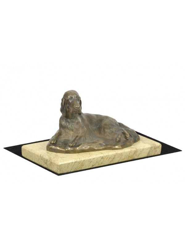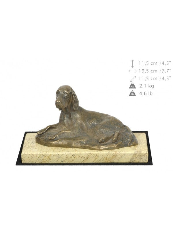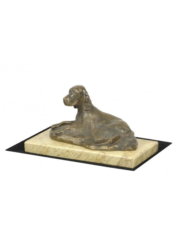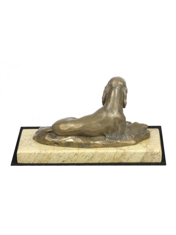 Handgjord Setter-statyett i kallstöpt brons med interiör i stark kvarts ståendes på sandmarmor i begränsad upplaga.