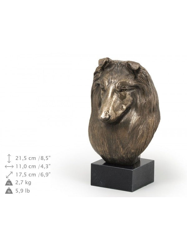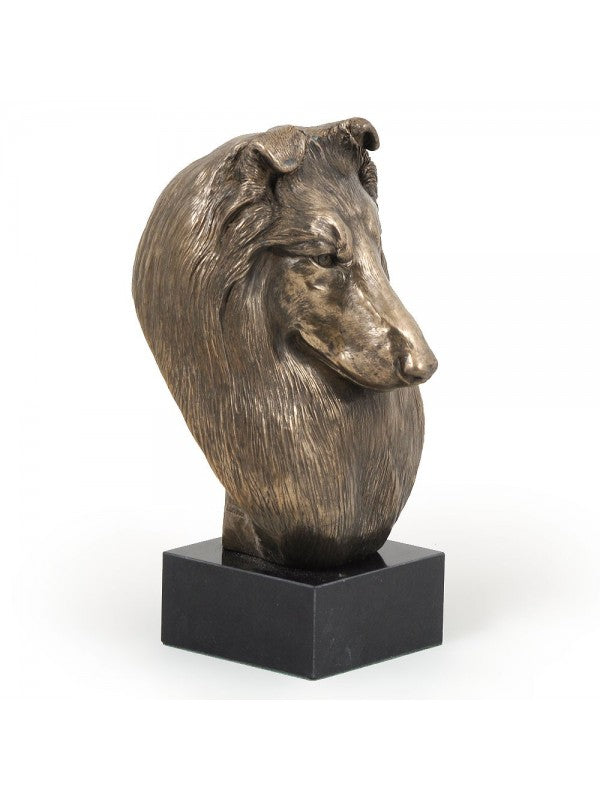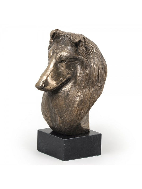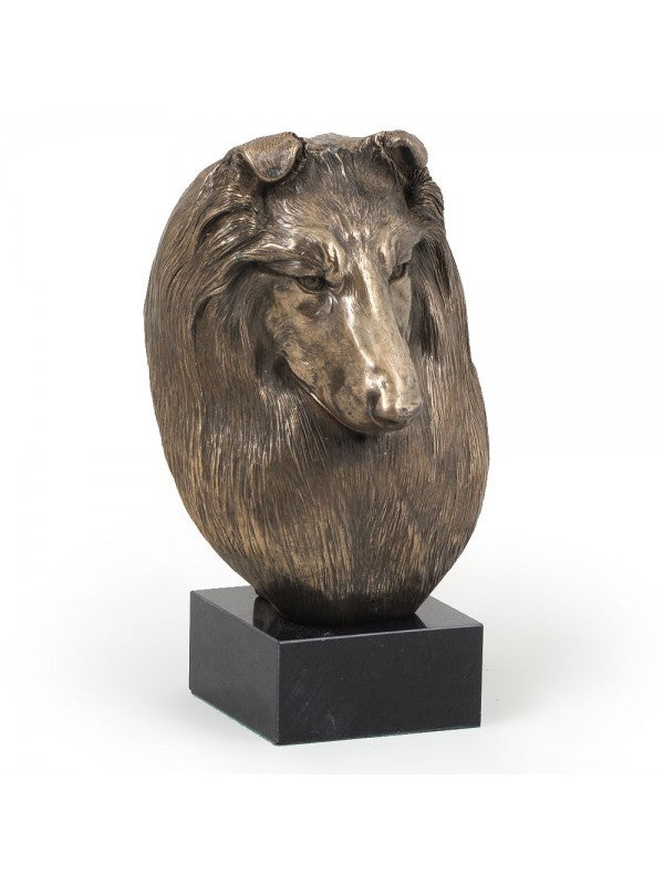 Handgjord Shetland sheepdog-figurin i i kallstöpt brons med interiör i stark kvarts ståendes på marmor i begränsad upplaga.